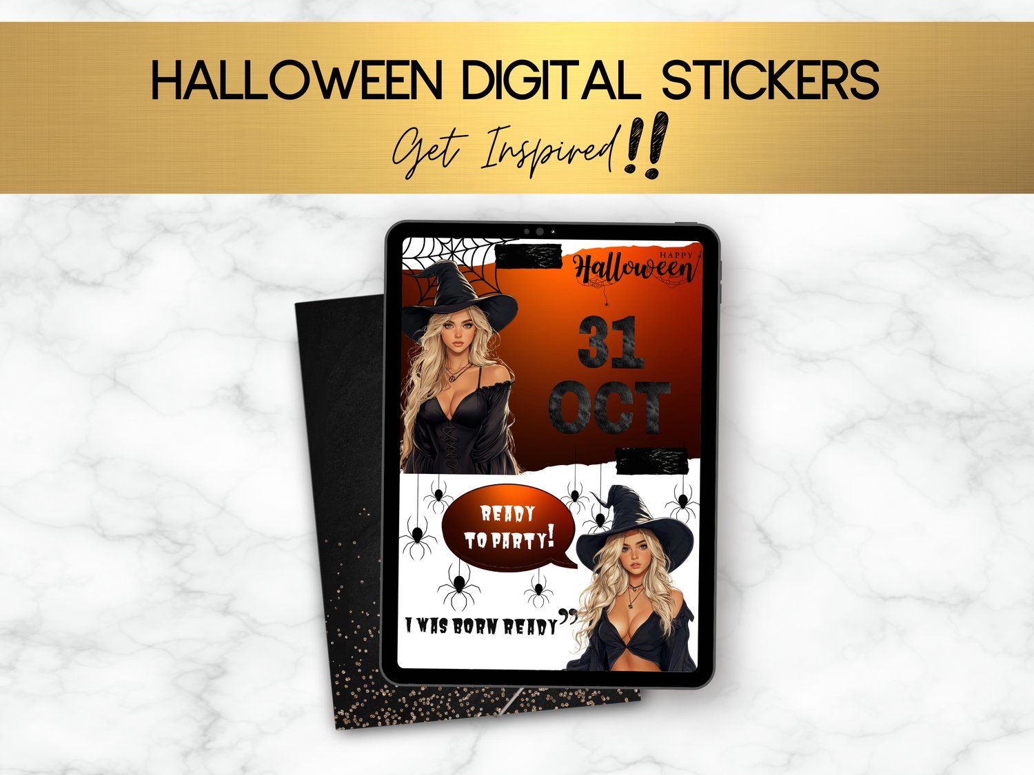 ⭐1 PDF with a link to instant download Halloween-themed digital stickers.