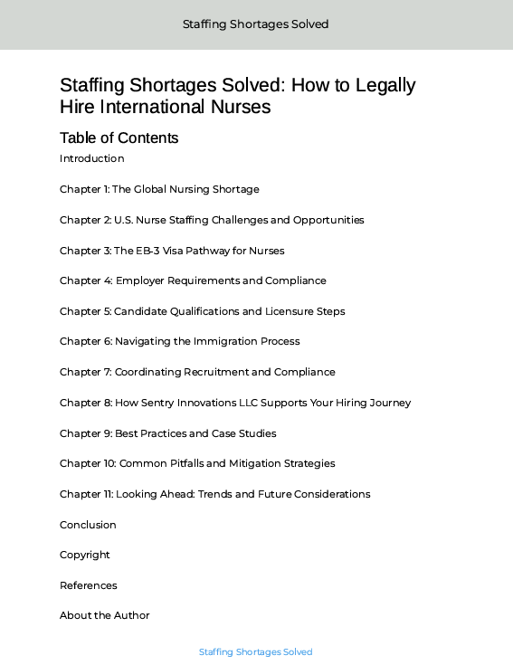 In "Staffing Shortages Solved," discover how international recruitment can address the critical nursing shortages plaguing U.S. healthcare, driven by an aging workforce and increasing burnout. This guide offers practical strategies for navigating complex immigration processes, ensuring compliance, and integrating global talent into local systems. With a focus on sustainable solutions, it empowers institutions to build a diverse, skilled nursing workforce capable of enhancing patient care.