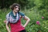 After a long winter, I love watching the leaves begin to turn green and the flowers start bloom. The hot pink speckles in the contrast color yarn reminded me of the bright pink peonies blooming among the green leaves of spring.
