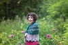 This half-circle shawl incorporates three simple lace patterns in bands of solid and speckled sock yarn. With only a few increase rows, and easily memorized stitch patterns, the pattern works up quickly in fingereing weight yarn.