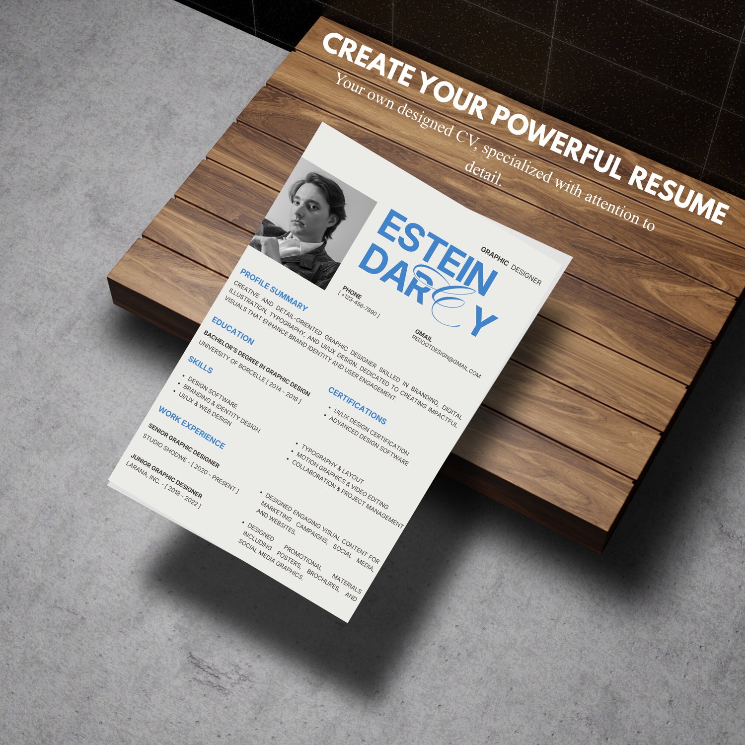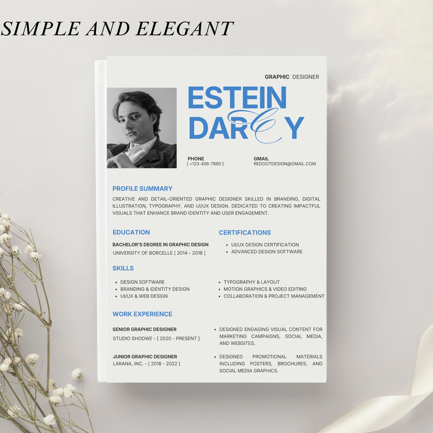 With a bold yet elegant layout, clear typography, and well-structured sections, this resume helps you showcase your branding expertise, design skills, and work experience in a visually appealing way.
