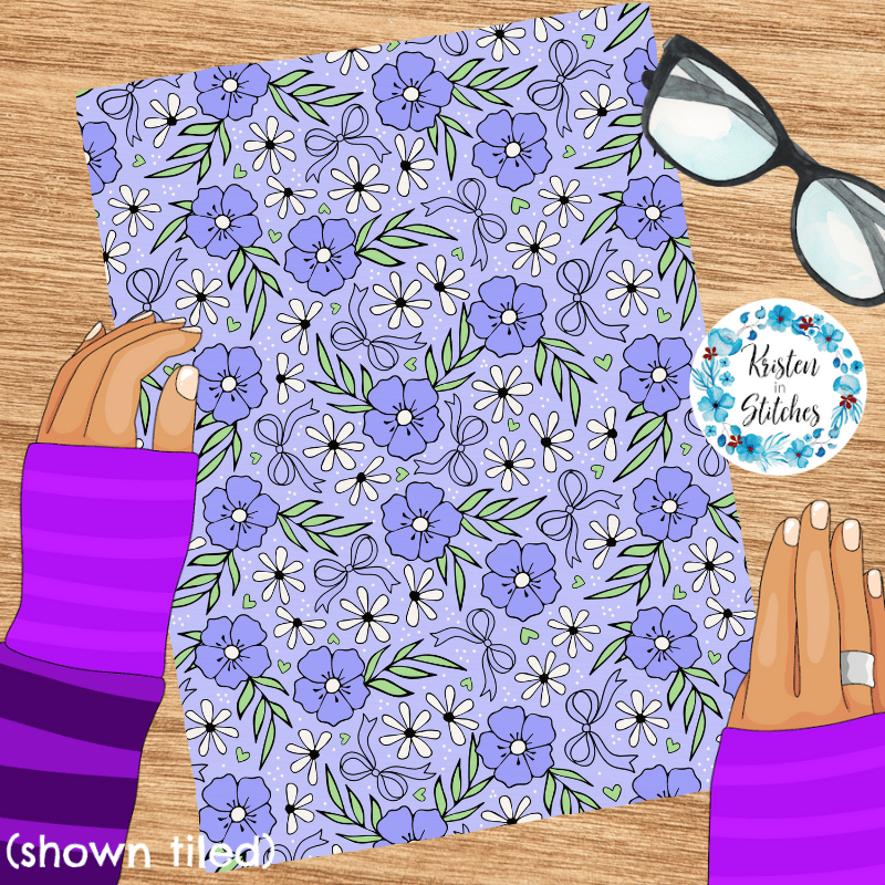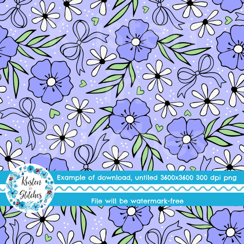 Sweet cottagecore floral with bows, hearts and daisy flowers.