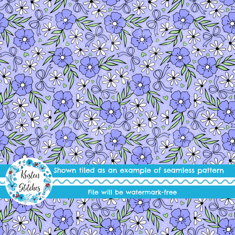 Coquette Wildflower Floral Seamless Pattern, Periwinkle Flower Blossoms