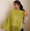 Soie is a handknit version of the classic square kerchief. Featuring an elegant diamond lace body framed by a 3 stitch garter border, it’s designed to use up a precious luxury skein of yarn that knitters save for something special. The name Soie simply means “silk” in French.