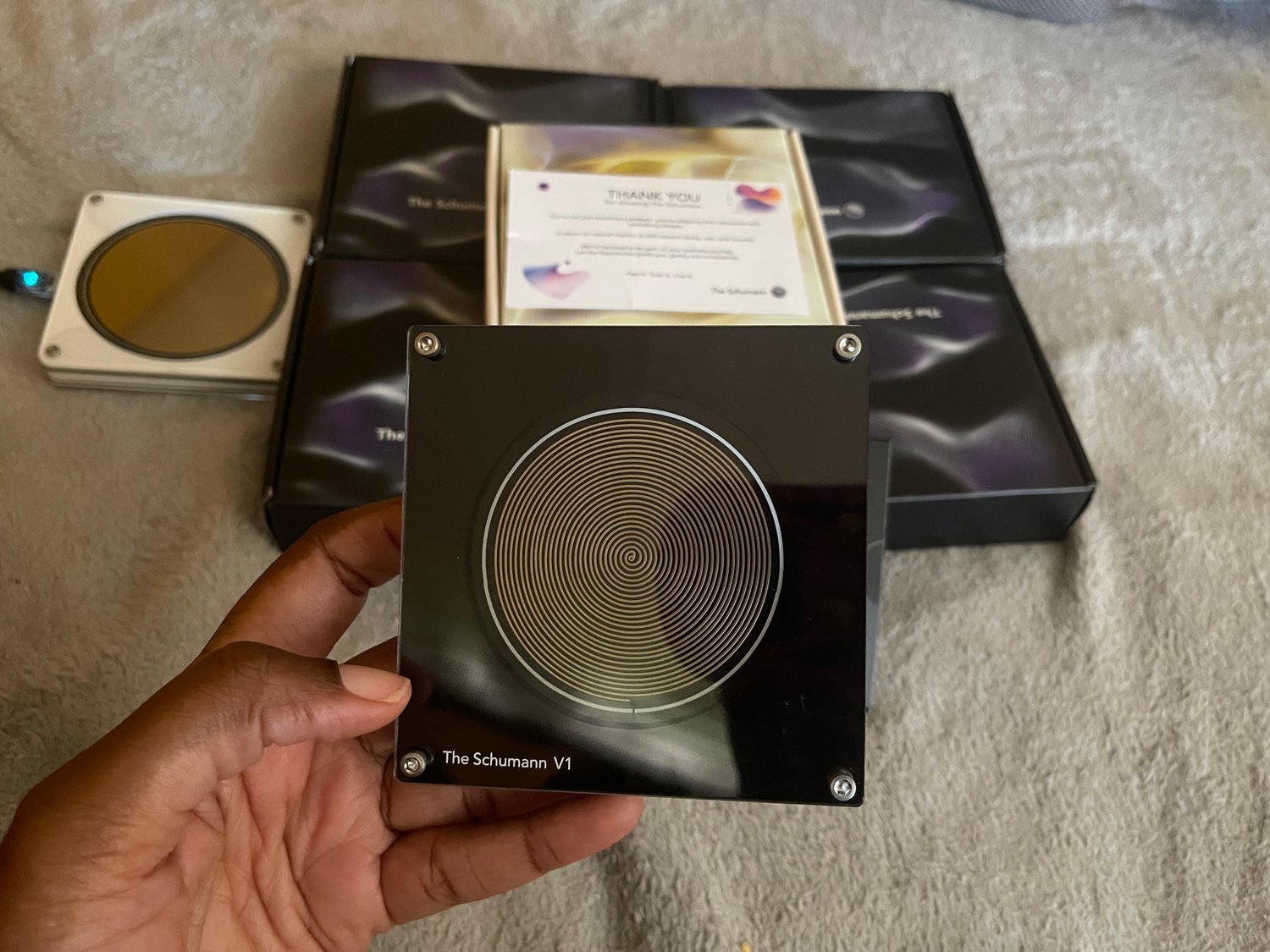 - 1 × Schumann Device Pro V1 – Black & Clear (Black Box)