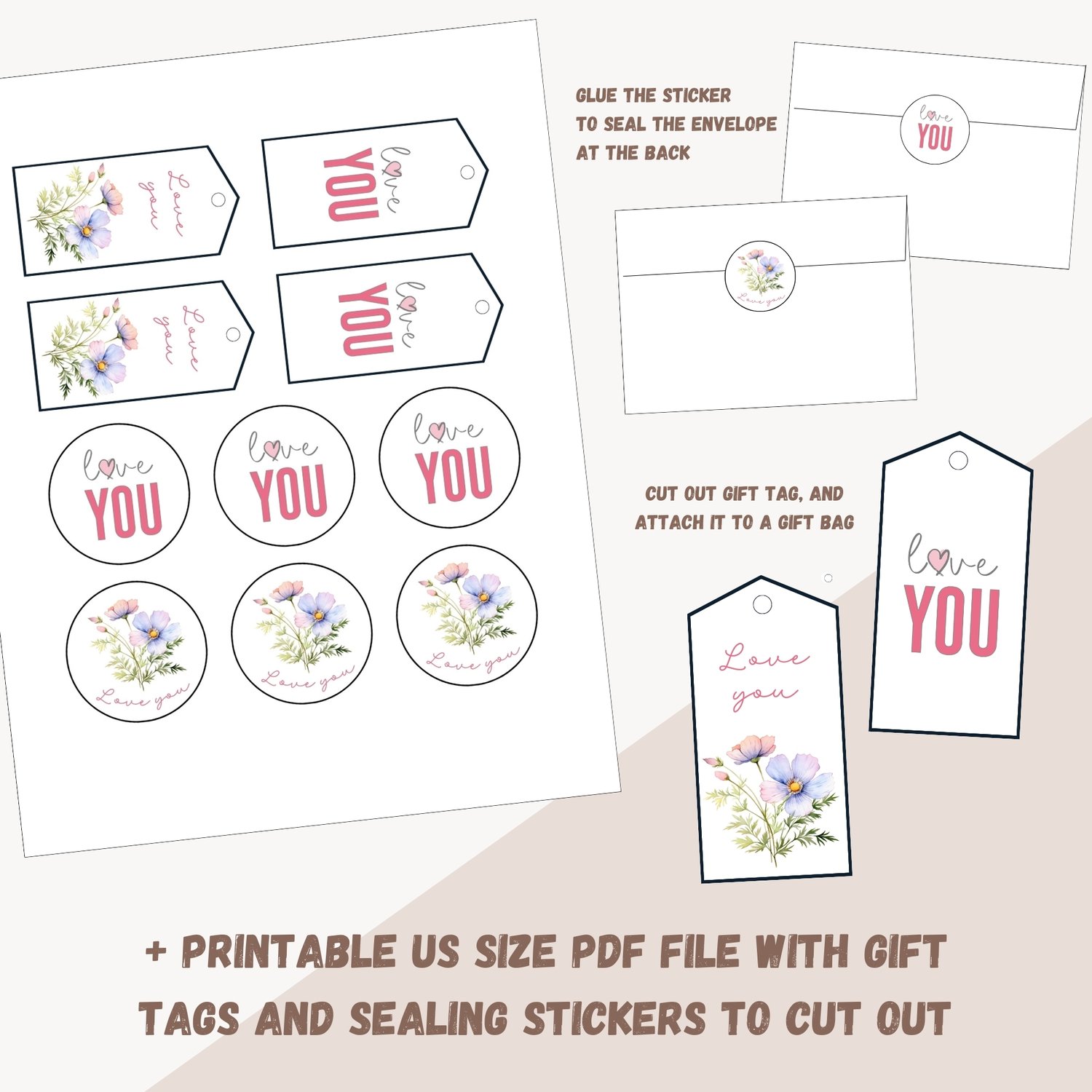 In order to get real sticker, print the PDF file with stickers on a sticker paper and cut it out. Otherwise, you will need a glue to attach it to an envelope.