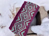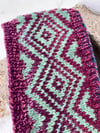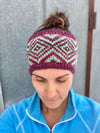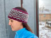 This headband is knit in the round with two contrasting colors. It is a quick knit and great for using up small amounts of special yarn.