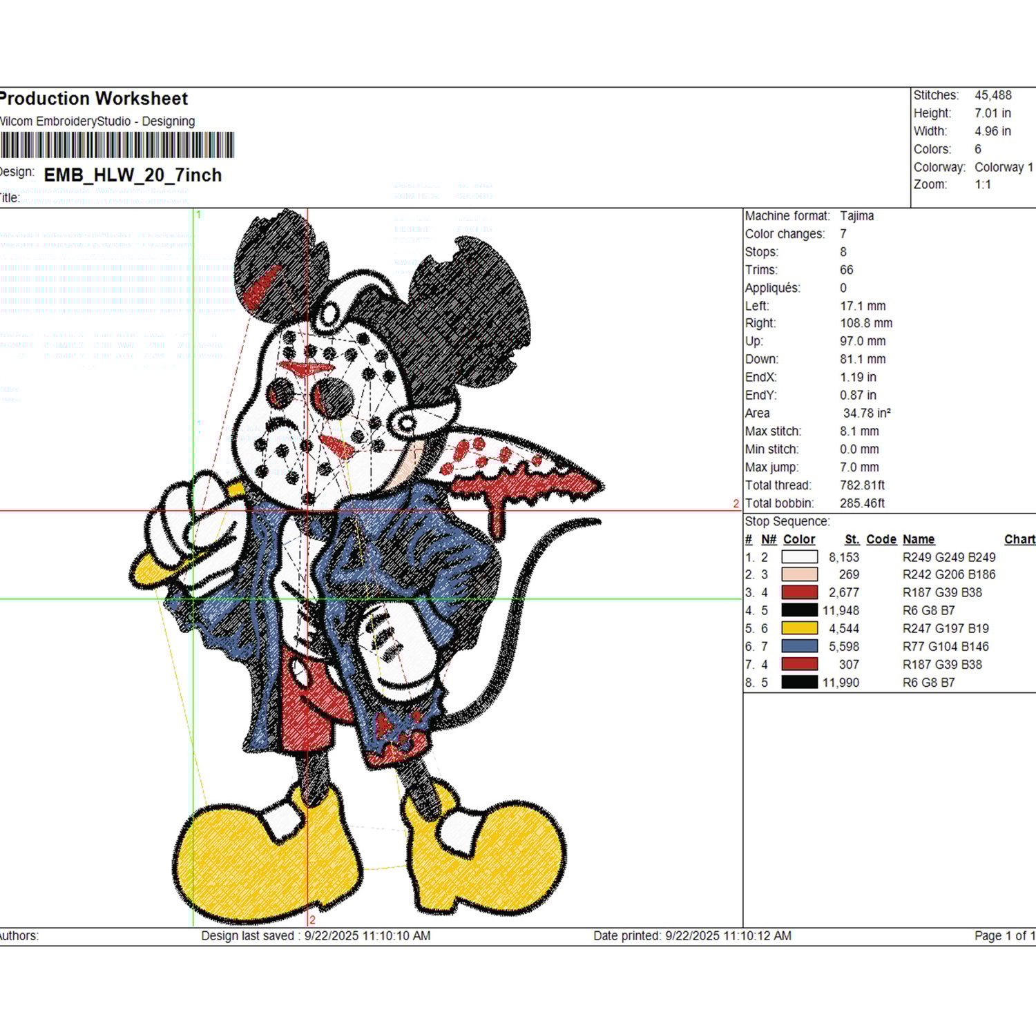 Halloween Mickey Myers Costume Embroidery Designs, Michael Myers Embroidery Files, Disney Halloween Embroidery, Horror Halloween Machine Embroidery Design, Digital Download