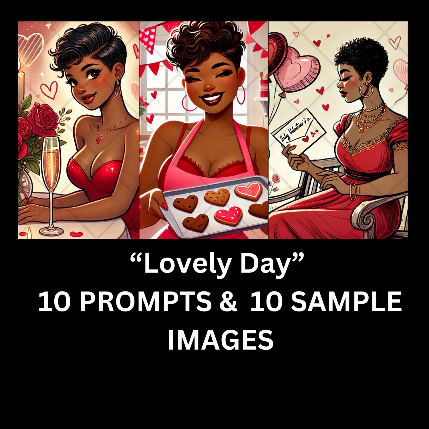 AI Art Prompt Guide "Lovely Day" - 10 Prompts & 10 Sample Images Celebrating Self Love | Holiday | Black Woman | Valentine's Day