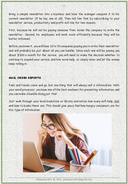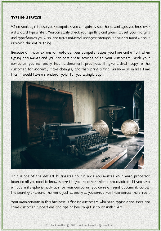 Most people use their computer to do simple tasks, such as their taxes. Or they buy a word processor so their children can write term papers and get better grades in school. Very few people realize that their computers can make them money as well as fulfilling all these other functions.