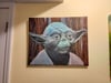 Starwars Oil Painting of Yoda on Black Canvas with hanging hardware. 24" x 20"