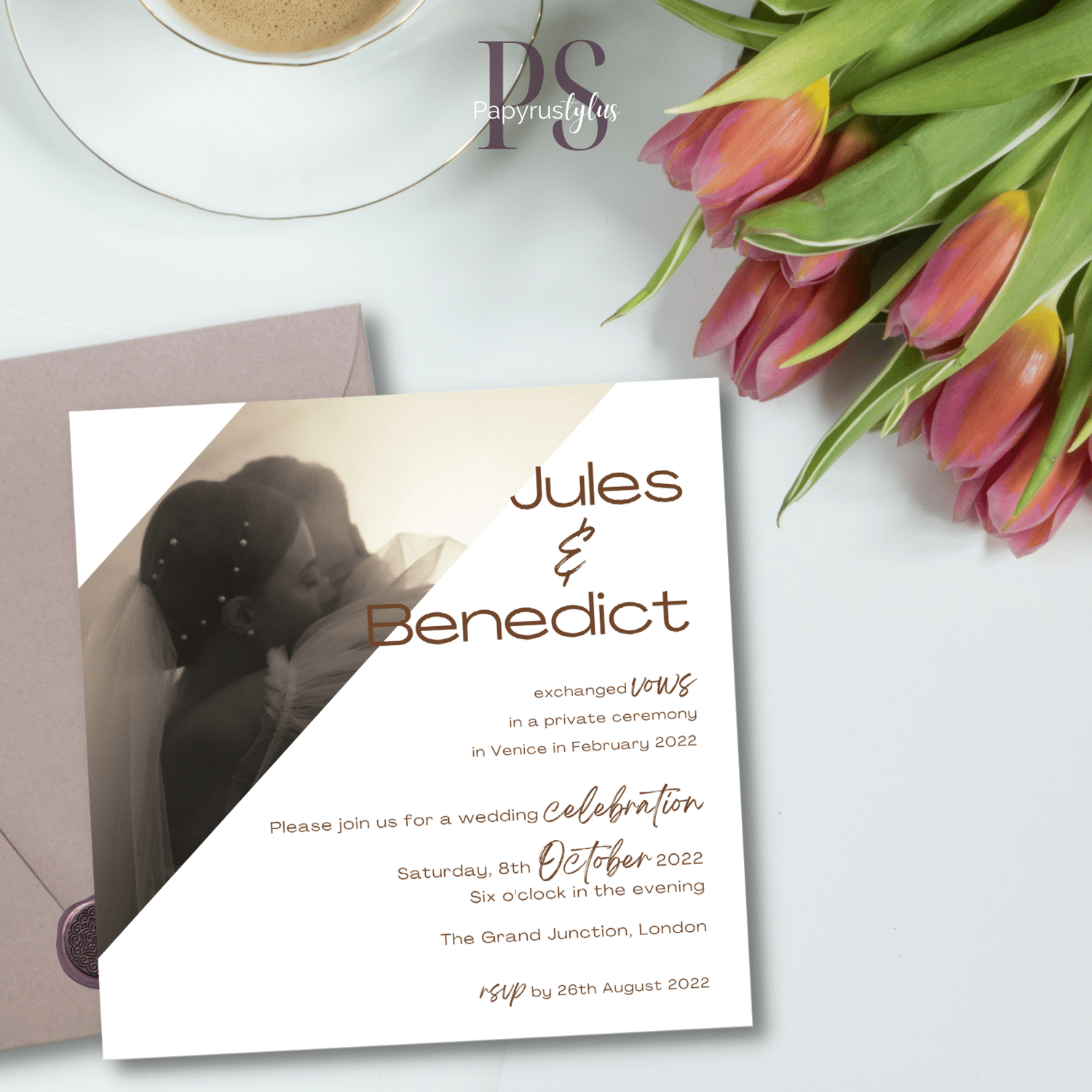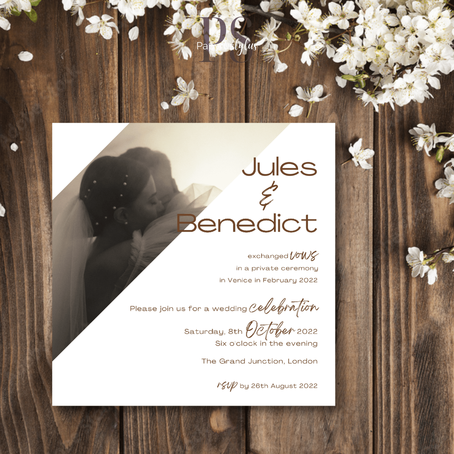 JULES Stylish Wedding Invitation Template | PHOTO STRIPE | WHITE