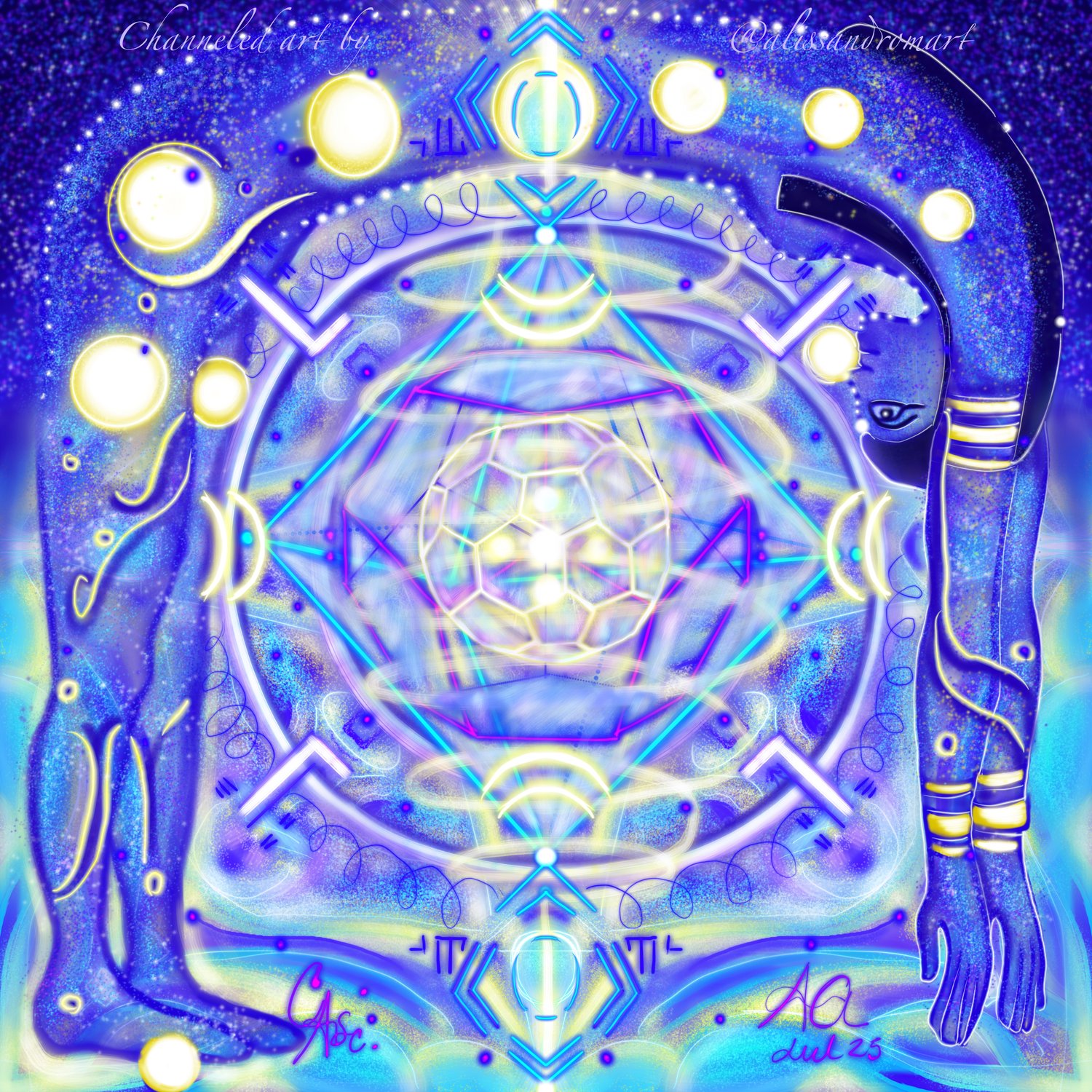 Recuerde que el arte del lenguaje de luz canalizado se realiza mediante formas de frecuencia, vibración y geometría, así como códigos de lenguaje de luz. El uso de este arte canalizado requiere disciplina para la contemplación y la meditación, así como asumir la responsabilidad de uno mismo en el proceso de curación de lo que emerge de nuestras capas de conciencia y campo de energía. El uso de estas herramientas de arte y frecuencia canalizadas es por tu elección y en el uso de tu libre albedrío. Este arte canalizado no pretende sustituir ninguna asistencia profesional o médica. Si tiene problemas de salud graves, considere buscar un profesional certificado.