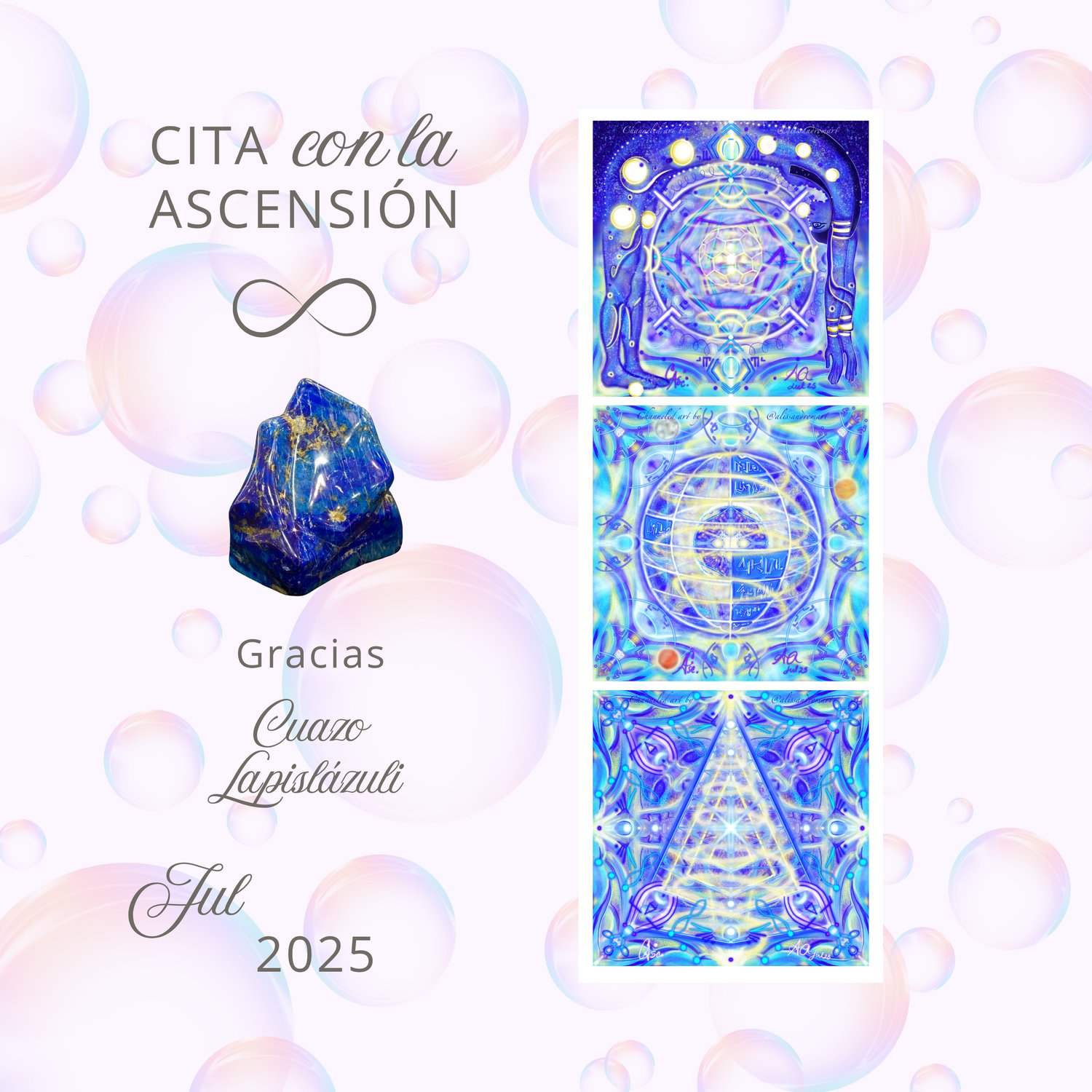 All the information of light-love codes within the channeled artworks of the Appointment with Ascension, are a collective information received in unity with each host (@pausameditationstudio, @junkdna and @thequantumlight), facilitators (@jossyhalabi, @claudiahalabi24, @ayshaluzyamor, @rositadacosta, @angelicadacostabrito) and assistants, is a channeling in unity granted by the high spheres of light ascended masters, archangels, families of light and stars; Therefore, one third of what is received in the energy exchange is reserved to continue spreading and expanding the light and knowledge of this free encounter.