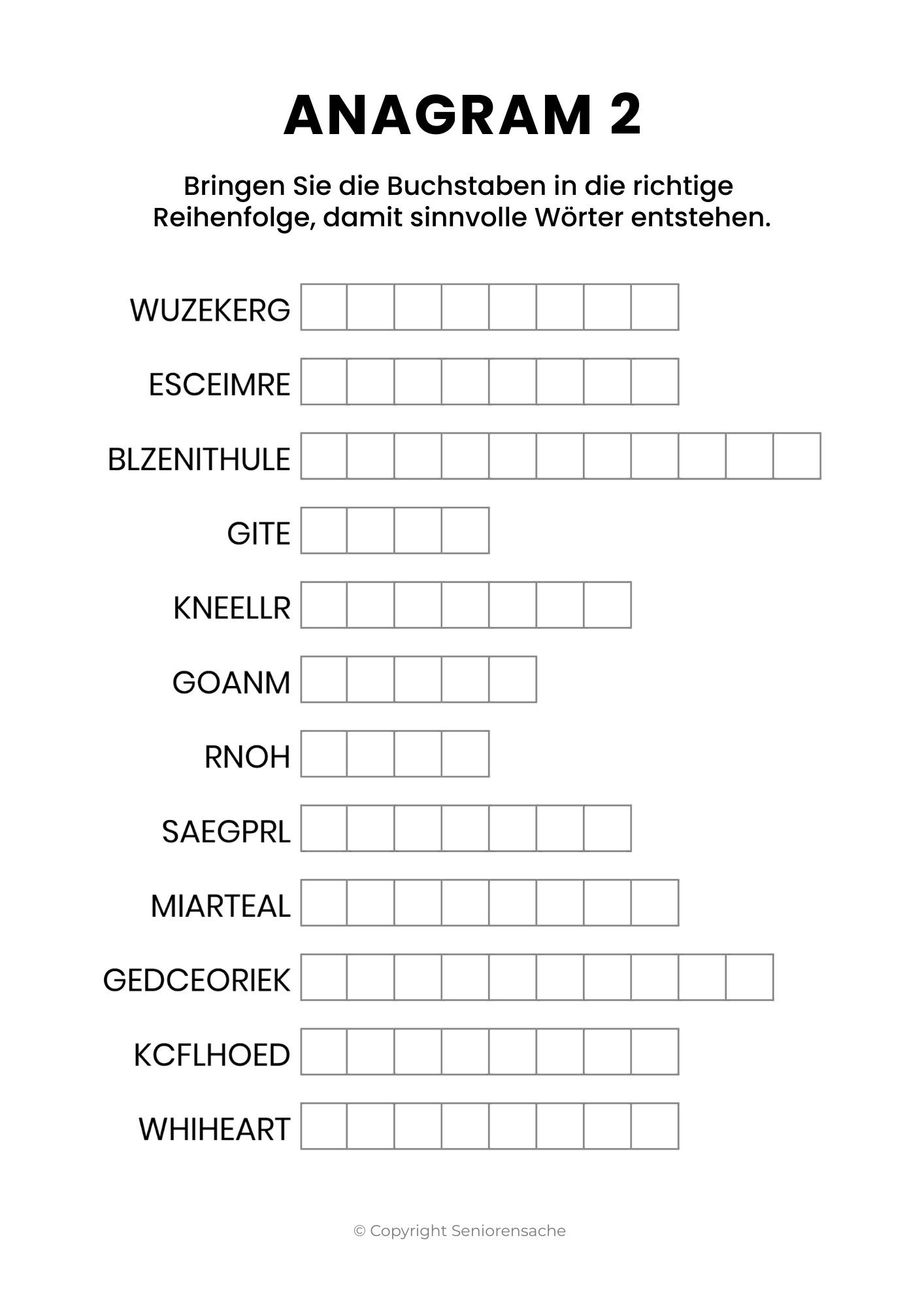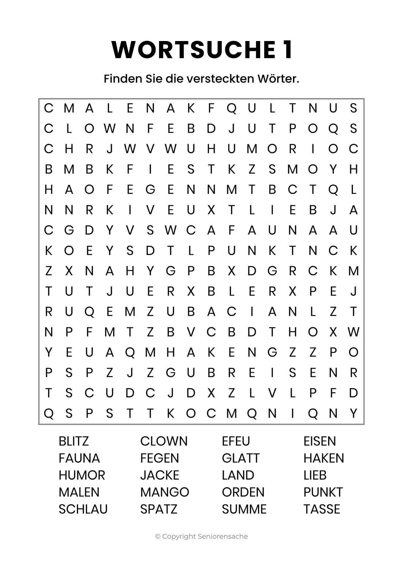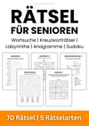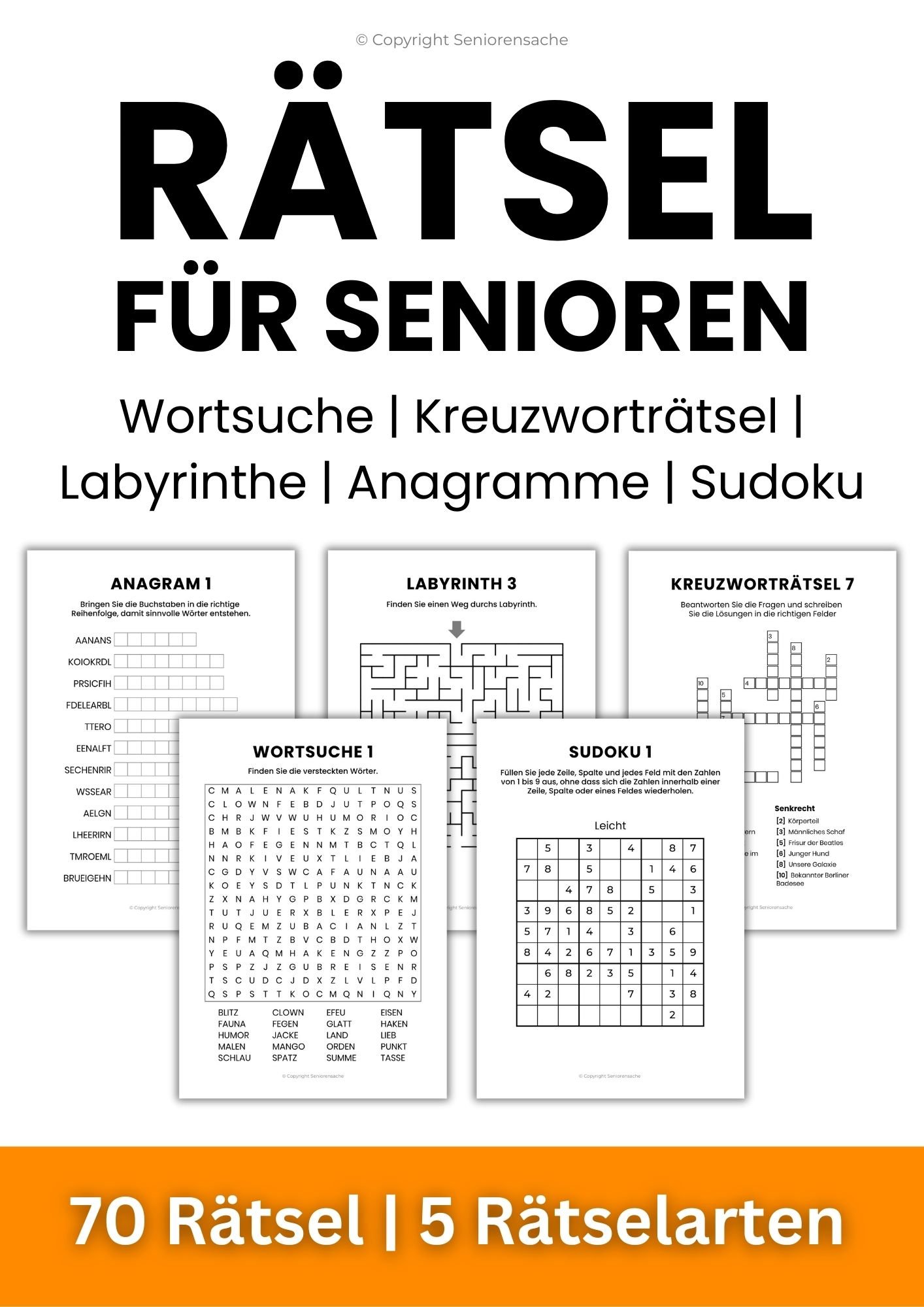 Rätesl für Senioren in großer Schrift zum Ausdrucken: Wortsuchrätsel, Kreuzworträtsel, Sudoku, Anagramme, Labyrinthe