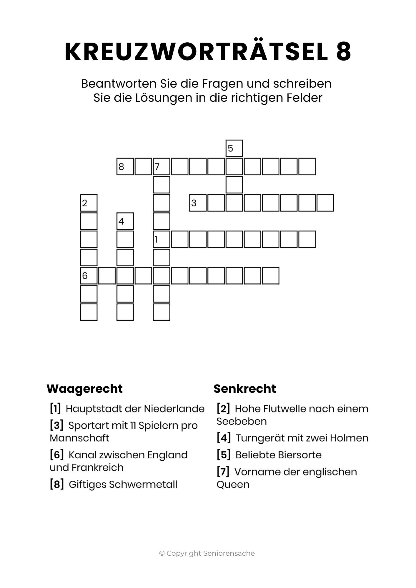 - Kreuzworträtsel – klassisch, unterhaltsam & seniorengerecht