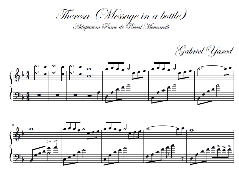 Gabriel Yared - Message in a Bottle - Theresa - Piano Sheet Music