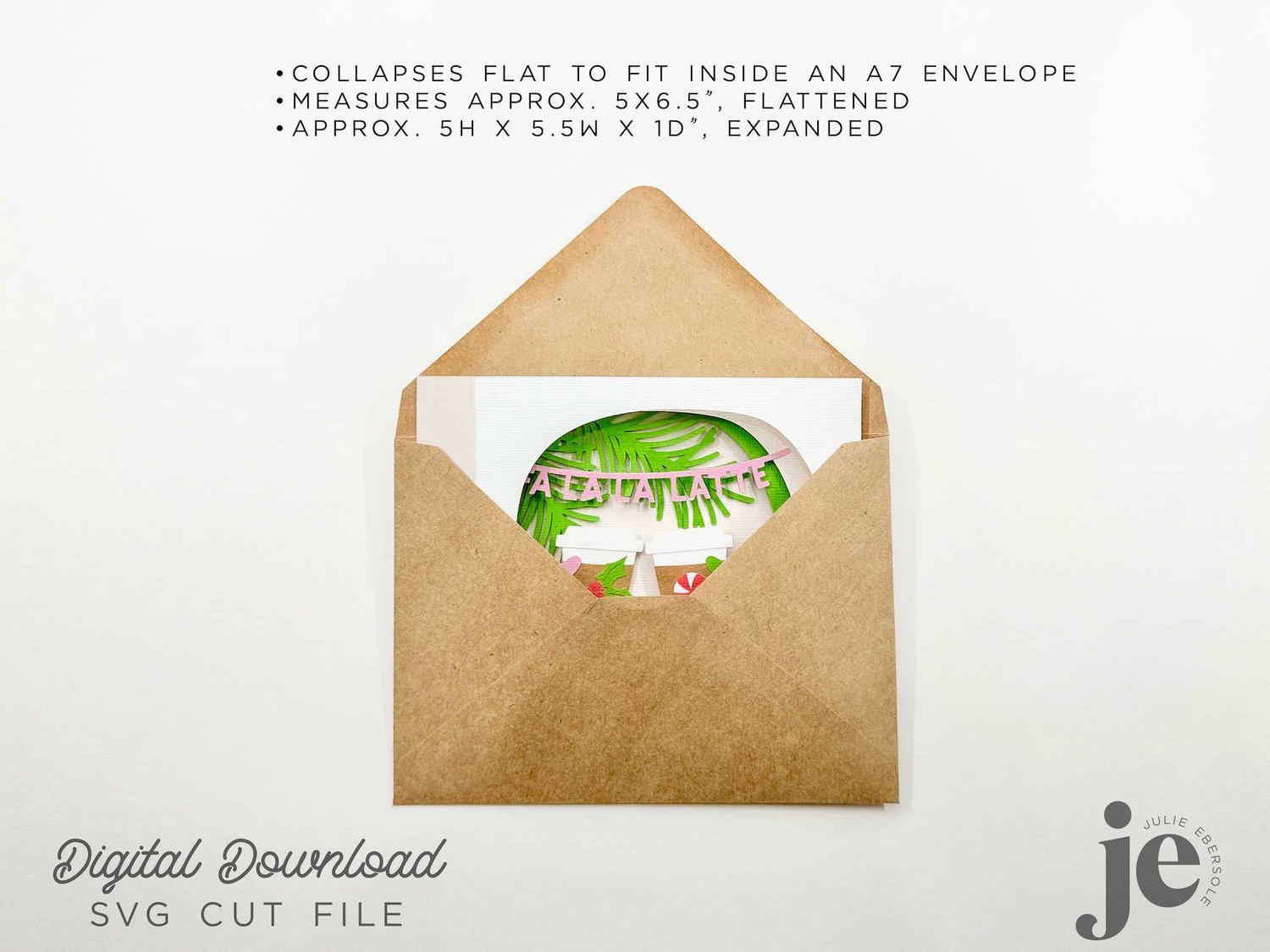 Finished size: Approx. 5"H x 6.5"W, when collapsed and fits inside a standard A7 envelope. Measures 5"H x5.5"W when expanded.