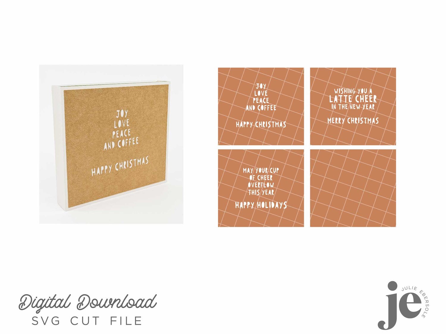 - SVG file for a 3D Christmas Coffee Shadow Box/Pop-Up Card, with a variety of sentiment options as well as a blank one for the back, to customize as you wish.