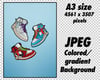 1 jpeg file at A3 size, 300ppi in colored/gradient background