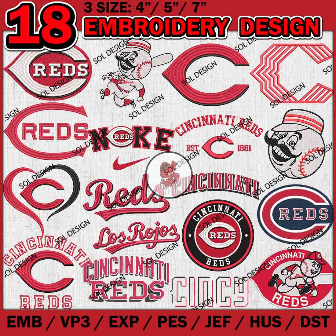 18 Cincinnati Reds MLB Team Bundle Embroidery Designs, MLB Cincinnati Reds Embroidery Designs, MLB Reds Machine embroidery Designs Bundle, Baseball Team Bundle, Digital Download