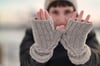 Both mitts begin with a tubular cast on at the cuff, and are worked in a cable and rib pattern to the opening for the fingers, which is finished with a tubular bind off. Rather than the typical thumb gusset construction, increases are worked on the palm and then thumb stitches are set aside on waste yarn. Thumb stitches are picked up last, continuing the cable and rib pattern, and finished with a tubular bind off. Because the same number of stitches is used for the thumb on both sizes you may wish to omit the cable on the thumb to make it larger.