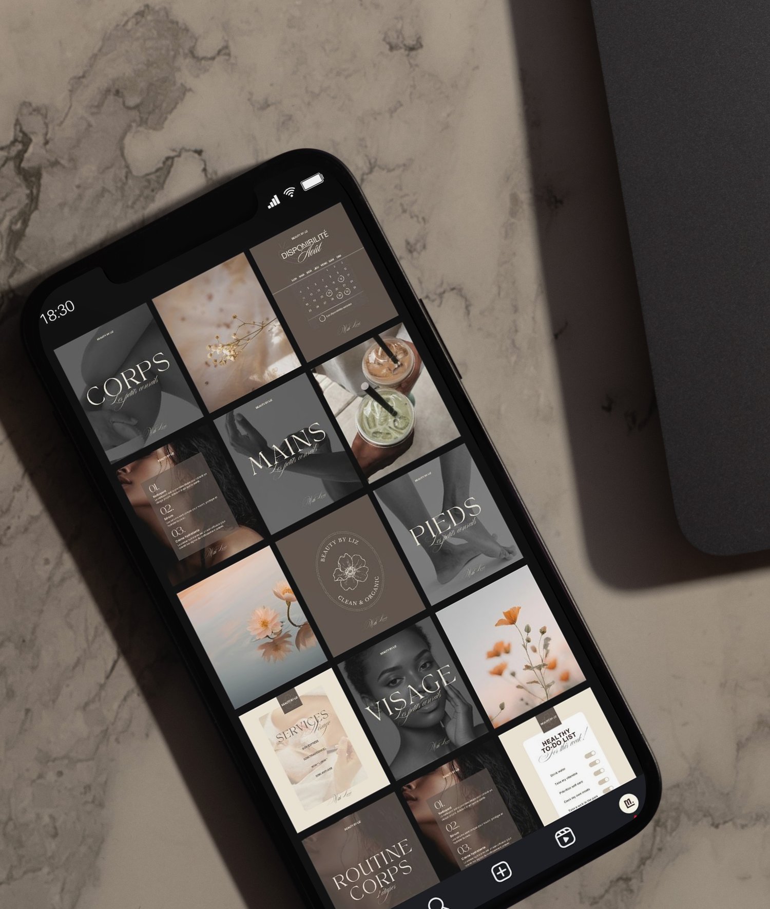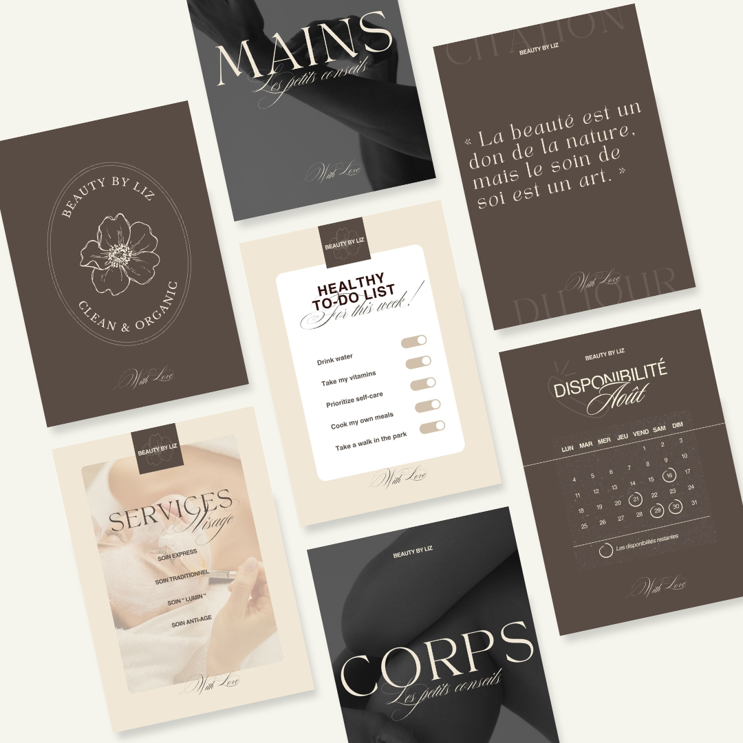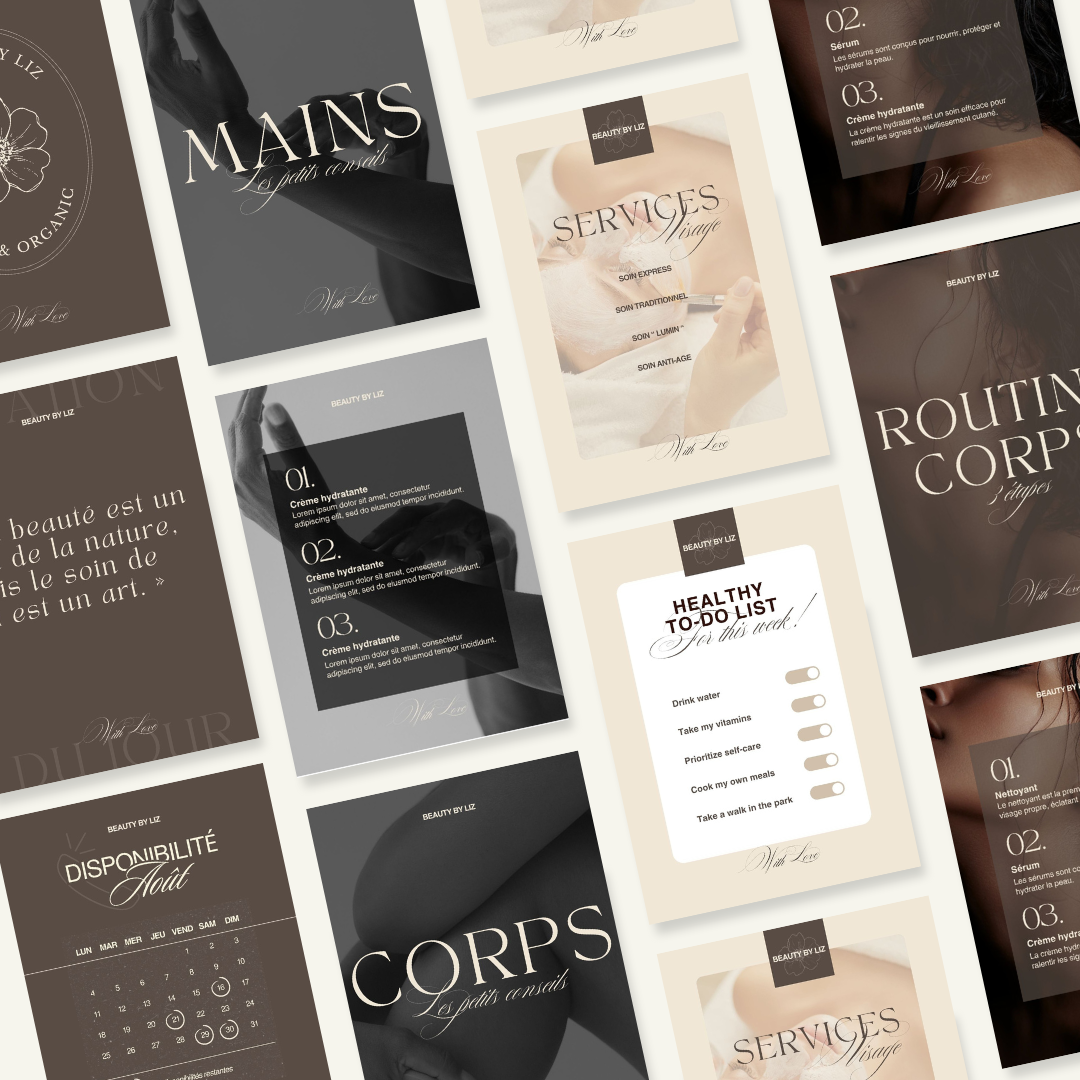 Des templates naturels et élégants pour un contenu beauté & bien-être doux mais professionnel.