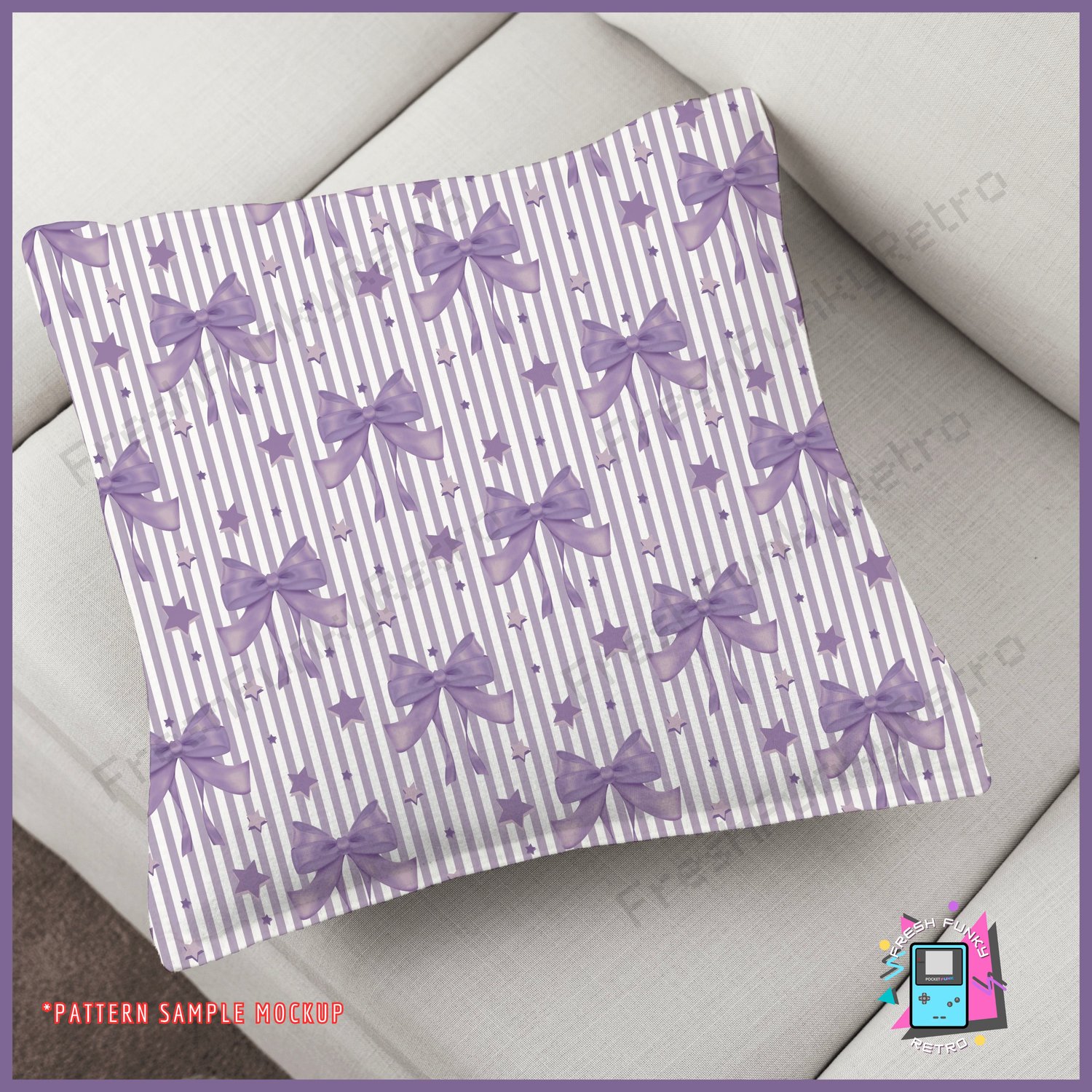Purple Bows and Stripes Seamless Pattern for Personal or Commercial Use, Vintage Coquette Ribbons Digital Paper | Instant Download