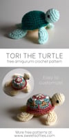 PDF Pattern for Tori the Turtle.  She's a basic sea turtle designed to be a simple "canvas" for you to customize with different color combinations, creative details, and more!