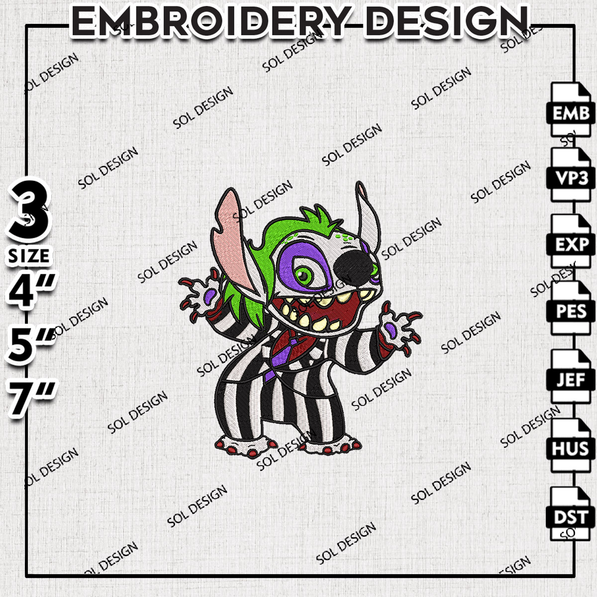 Beetlejuice x Stitch Embroidery Designs, Disney Character Embroidery Files, Horror Halloween Embroidery, Spooky Season Machine Embroidery Design, Digital Download