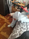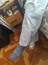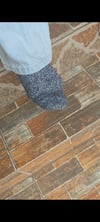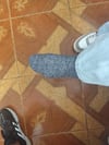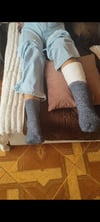 REAL INJURY crutching with grey fuzzy socks over the cast