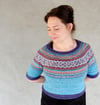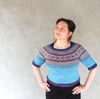 This is a pattern for an cropped, elbow length sleeved, circular yoked sweater with a generous fit. Lilian is worked from the top down and in the round, using the Fair-Isle knitting technique.