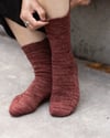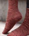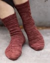 These are very simple toe-up socks that provide an easy way to learn twisted stitch cables. The pattern is worked in a mirrored fashion for each sock.