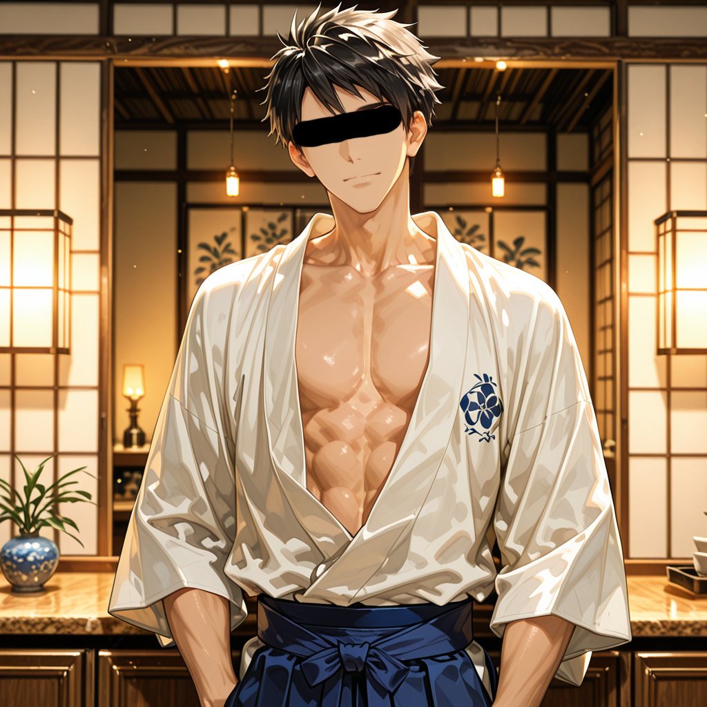 日本の正月をテーマに、着物を着用している男性を、キャラクターごとにお任せ作成しました。男らしいキャラクターの魅力を思い切って表現しました。