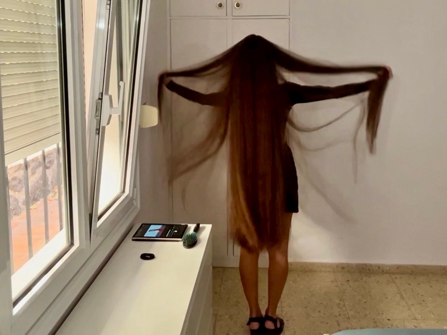 In this video I listen to music and display my healthy hair with freshly cut ends.