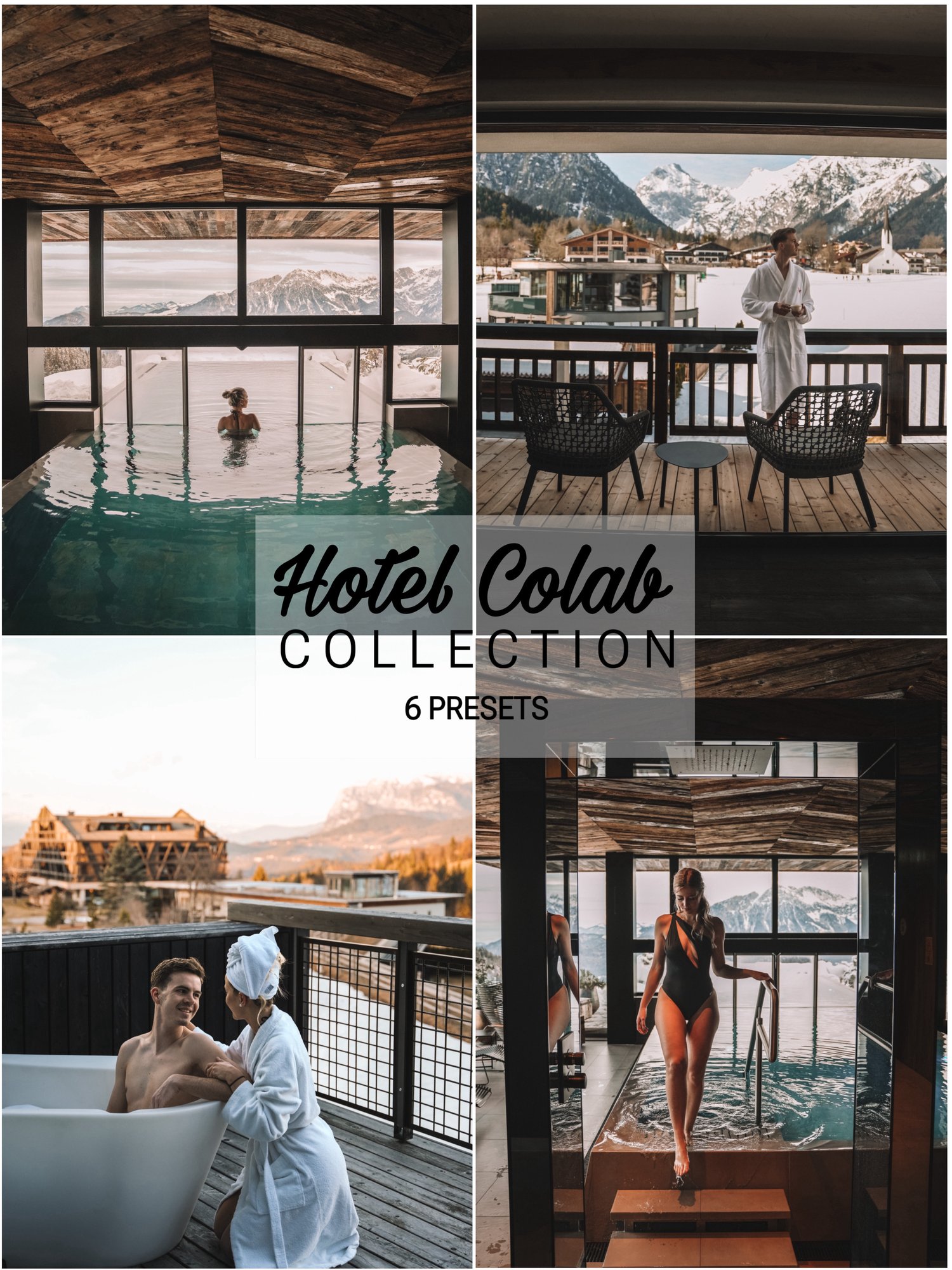 Here you will find the editing tones that we have created over the past years while working with hotels. These presets are perfect for your next Hotel Collaboration or just a comfy wellness stay in a mountain hideaway. Of course you can also apply them to any of your daily photos to add that warm and airy feel and to create well lit bright content with one simple click.