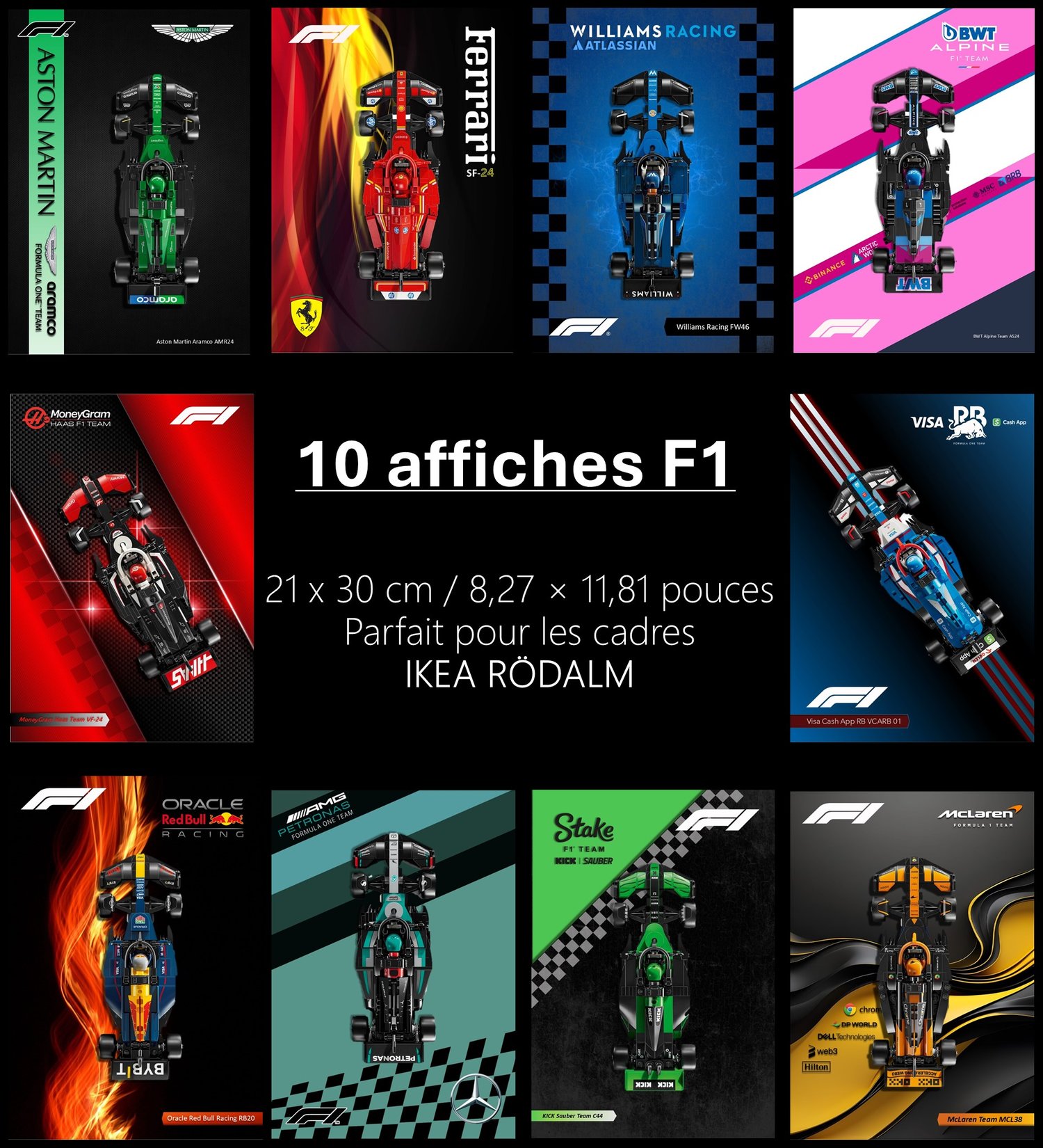 10 ensembles d’affiches (21x30 cm) compatible F1 Speed Champions LEGO 🏎️🔥
