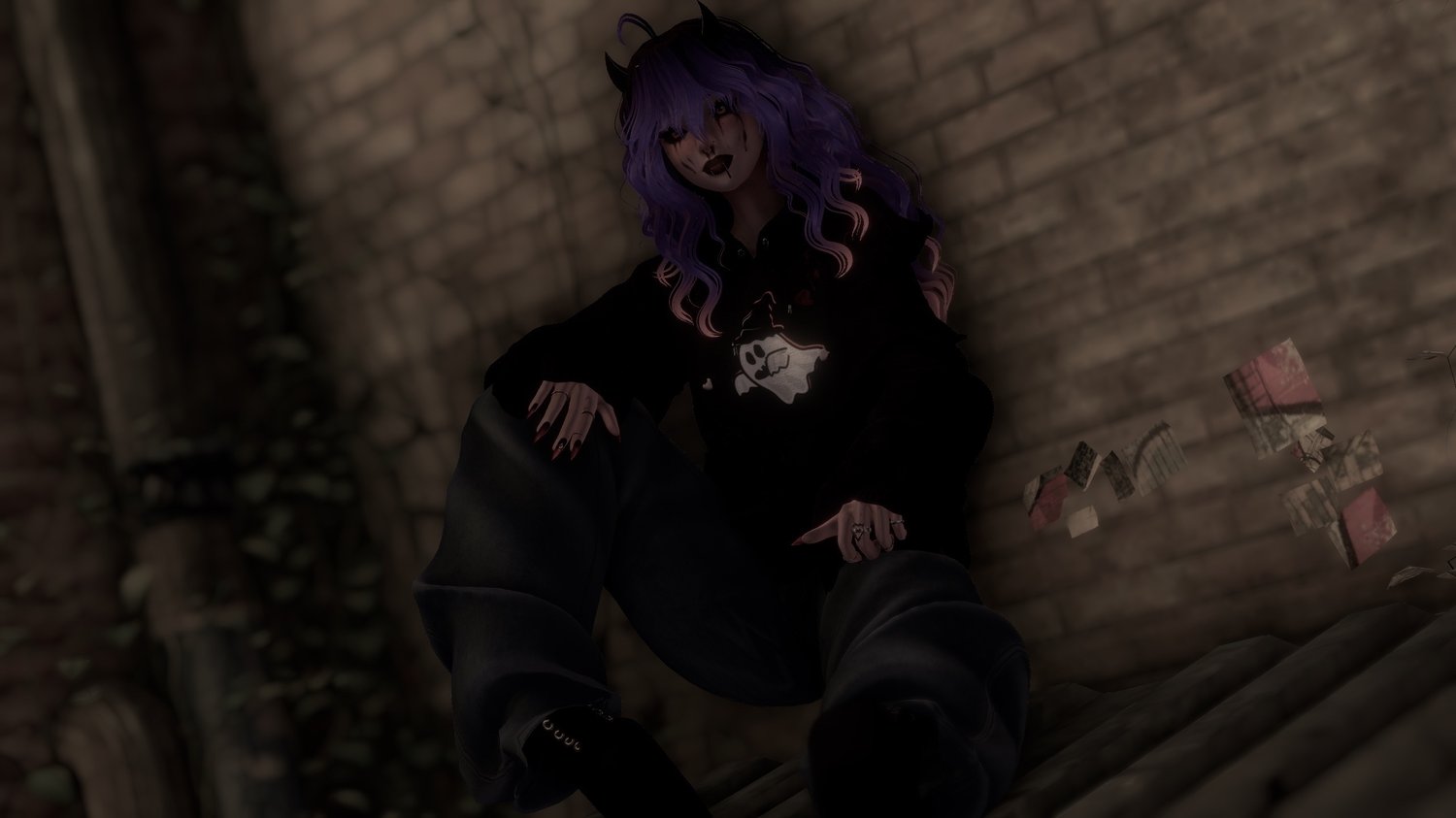 Tatttos, MimisStore (Bodysuit, Snake, Purse, Rings, Fishnets) Saikura (Azelea Head {My edit do not reuse!} Slimfit body, Slimfit Undies, Jeans, Hoodie, Lileila Hair, One Nitro Hair, Dori Hair, Nose Blood Texture) Nessy (Service Set Skirt, Grim set) Laced Boots, Tail, Horns, Pasties, Eye Blood Texture, Hair Alpha & Normals, Hair Textures