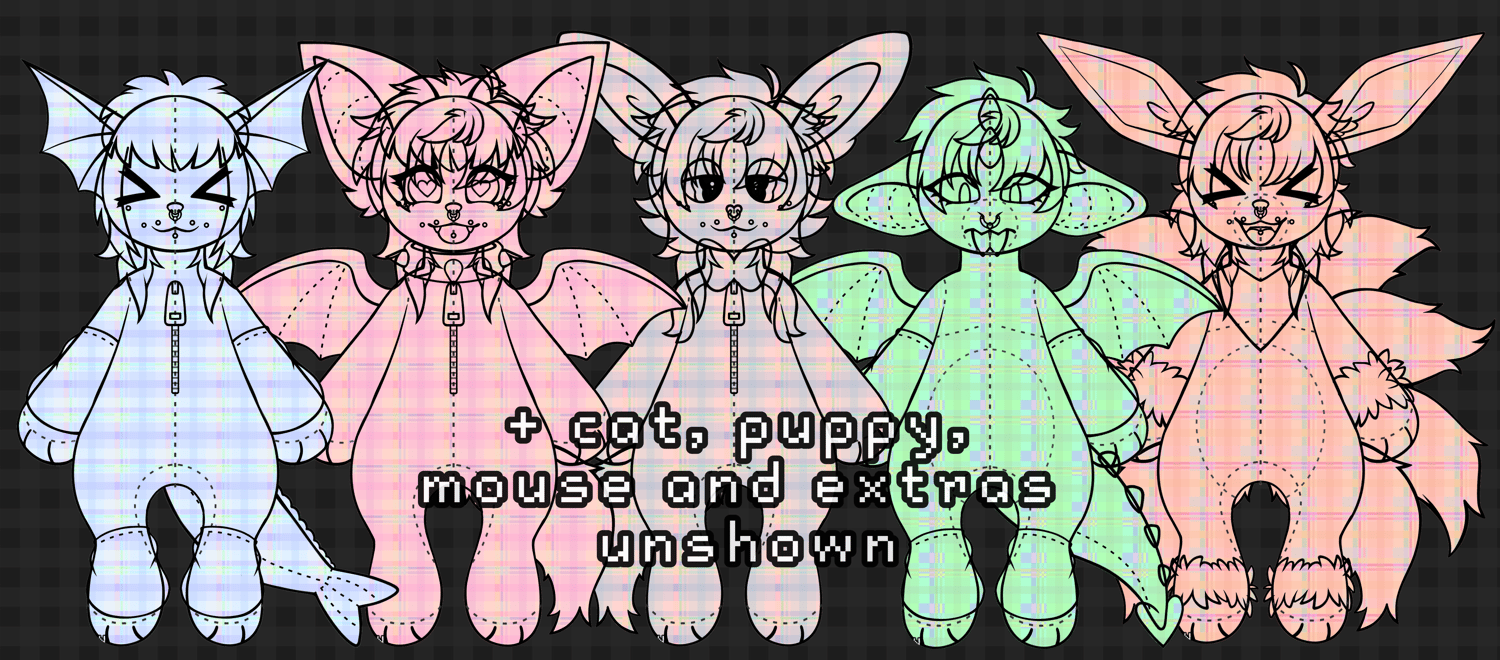 With purchase you can use this to make your own characters, use for existing characters, and sell designs(adoptables) using these lines. You may not remove my name or redistribute the files.