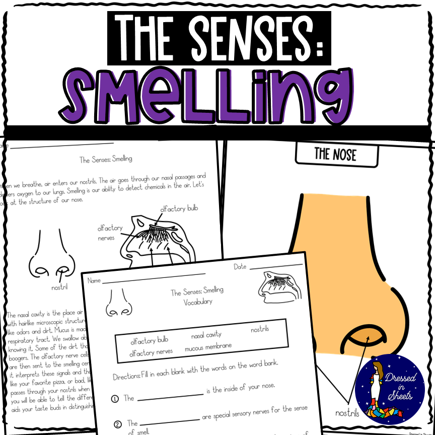 This resource is designed to help students learn about the nose. The purpose of the resource is for students to be able to identify and name different components in our nose and be able to explain how we smell. With the diagrams included students will know the location of specific places inside the human body and what function these structures perform. By reading along and looking at the diagrams students will have a visual and better understanding. This resource is great to build more understanding regarding our five senses.