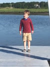 Little boys in intricately cabled sweaters are just adorable in my eyes. With two little boys at home I couldn’t resist designing a cabled sweater for them to wear. The cable patterns in both the front and back split and the cables wind around the collar. A braid winds down the outside of the sleeves. Named for Monomoy Island off of Cape Cod, Massachusetts where the twisting shoals twine like the cables on this sweater.