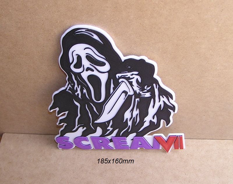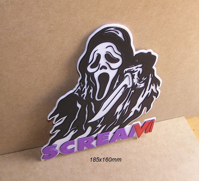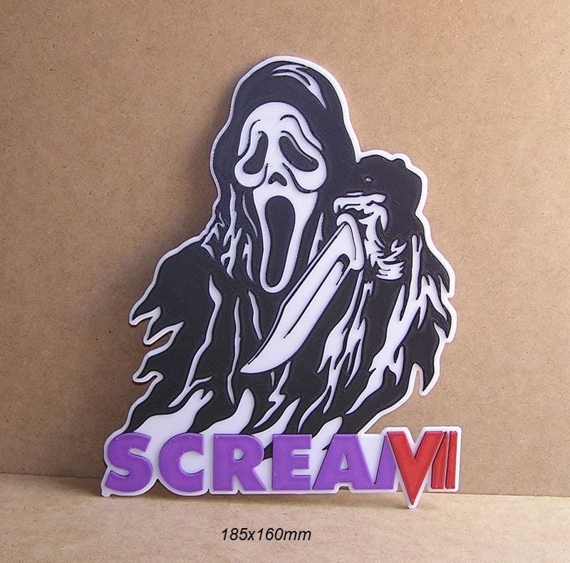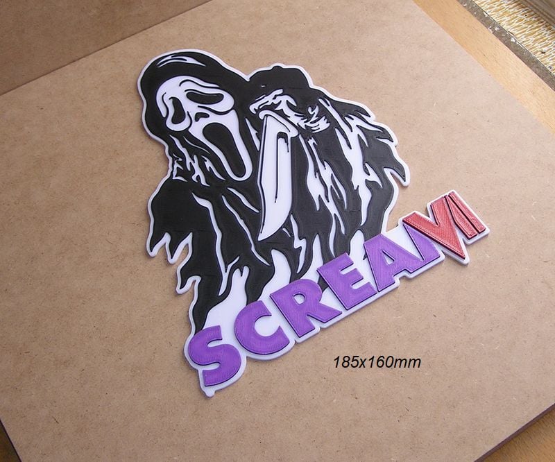 Scream Poster, Sign, Logo of the movie, these STL and Gcode files have been created to be printed in various colors with any FDM type printer. The color changes have been made with the Elegoo Neptune 3 Pro printer, but they can be printed on any printer.