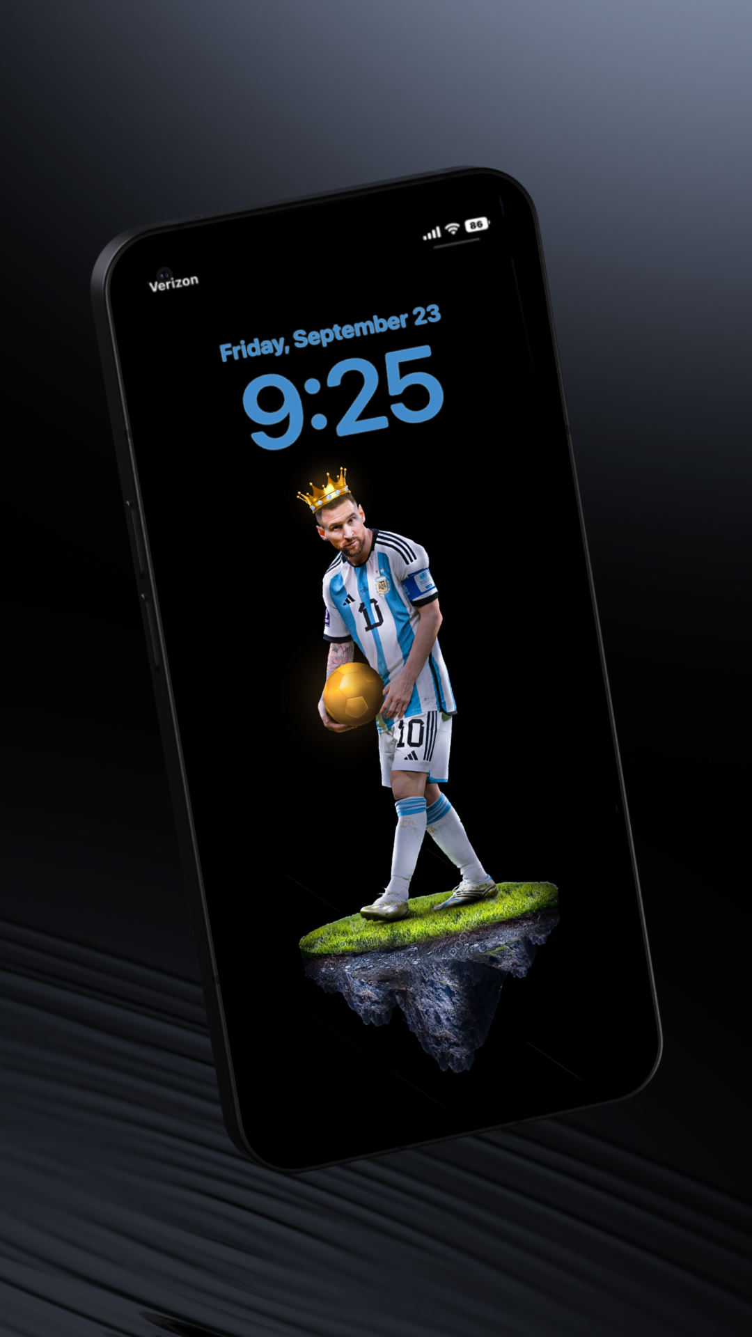 Bring the magic of Lionel Messi to your phone with this stunning wallpaper. Perfect for fans and admirers of one of the GOAT, this high-resolution wallpaper showcases Messi's iconic style, making your device a tribute to one of the greatest players of all time.