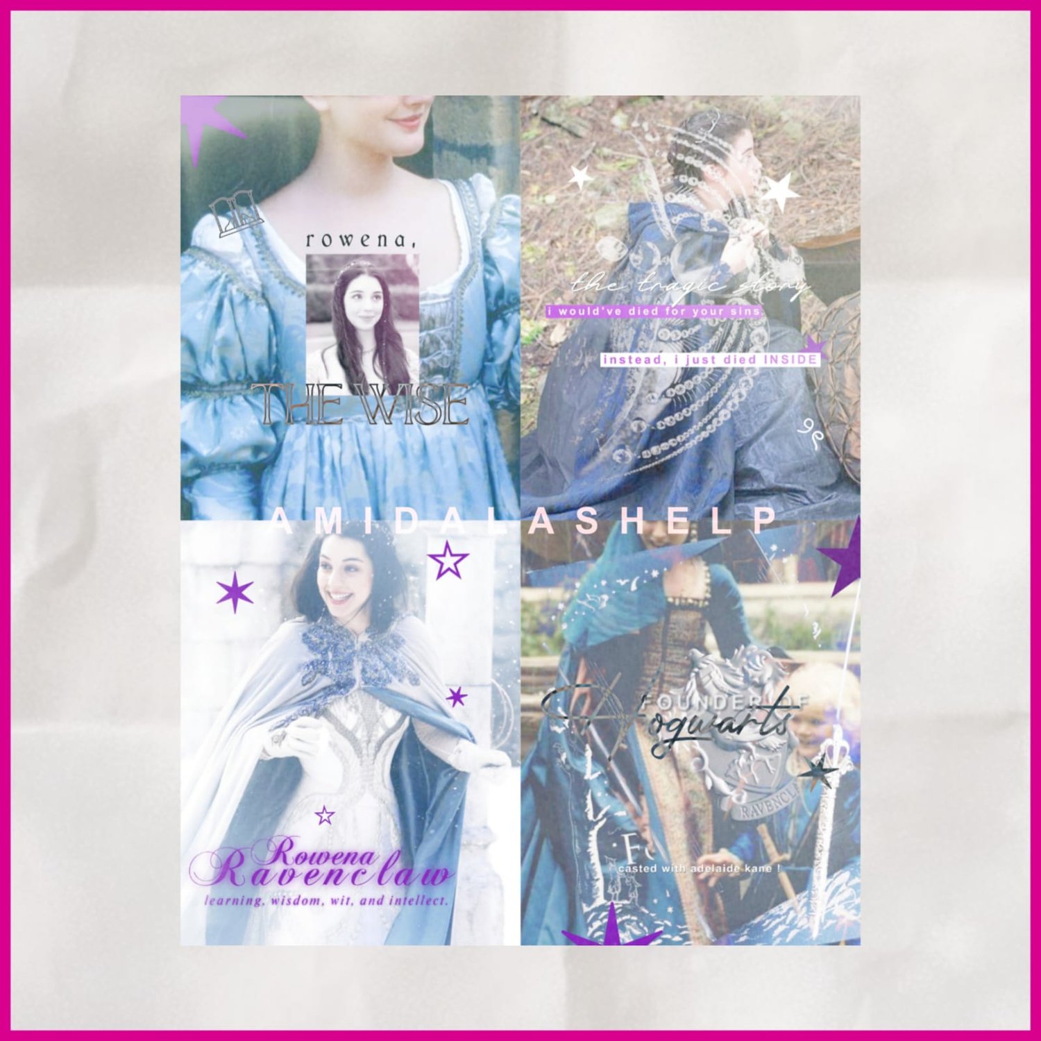 by purchasing this 4 photo collage you will receive a similar edit ( like the example image ) according to your character. <3