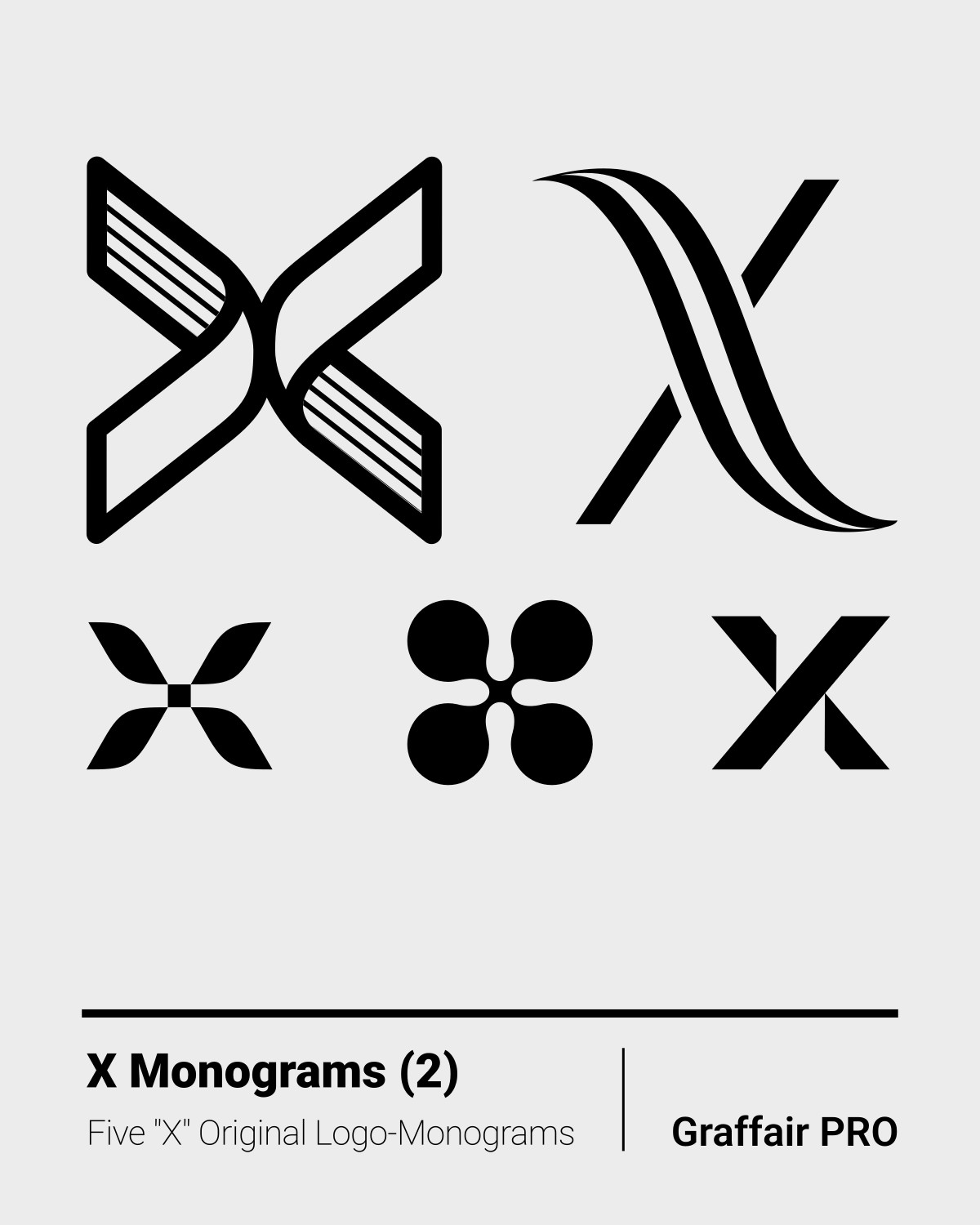 X Monograms (2): The 2nd set of five original "X" logo-monograms, included in the "1050 SVG Monograms" super bundle, amongst others, which also features an Index catalog.