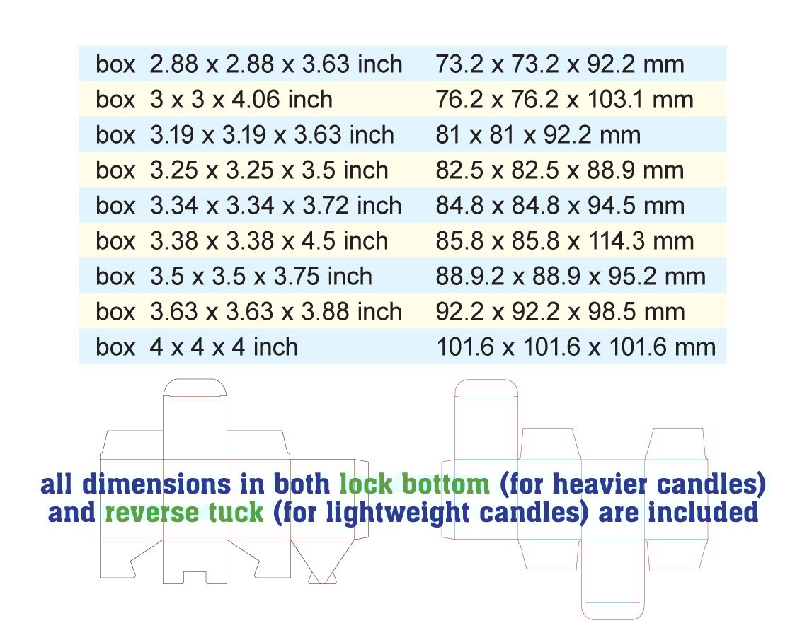 Lock bottom boxes are great for heavier candles or in a glass jar, for lightweight candles use reverse tuck box.