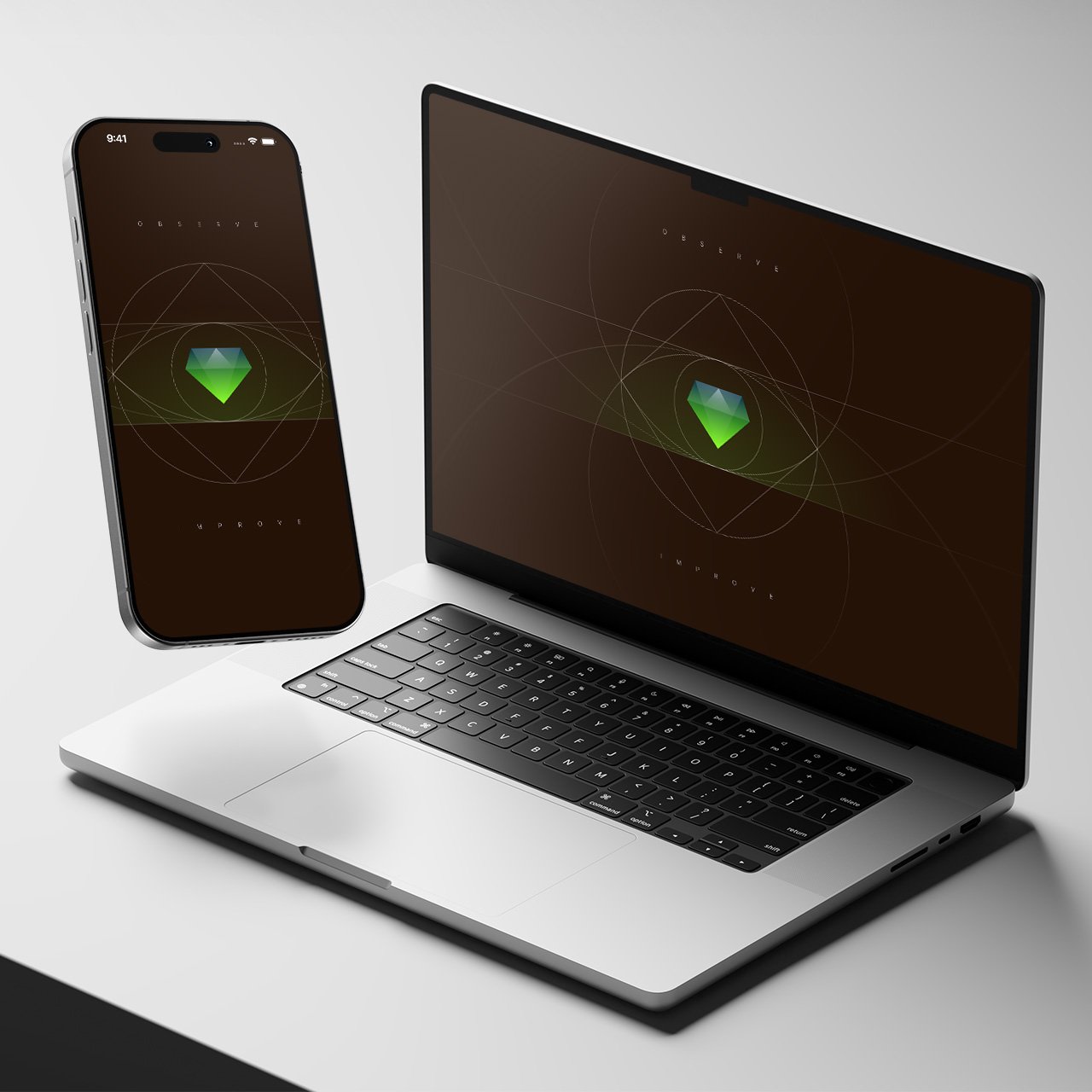 Abstract, ambient, glowy brown-and-green geometric wallpaper.
