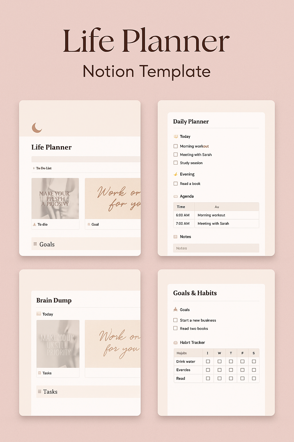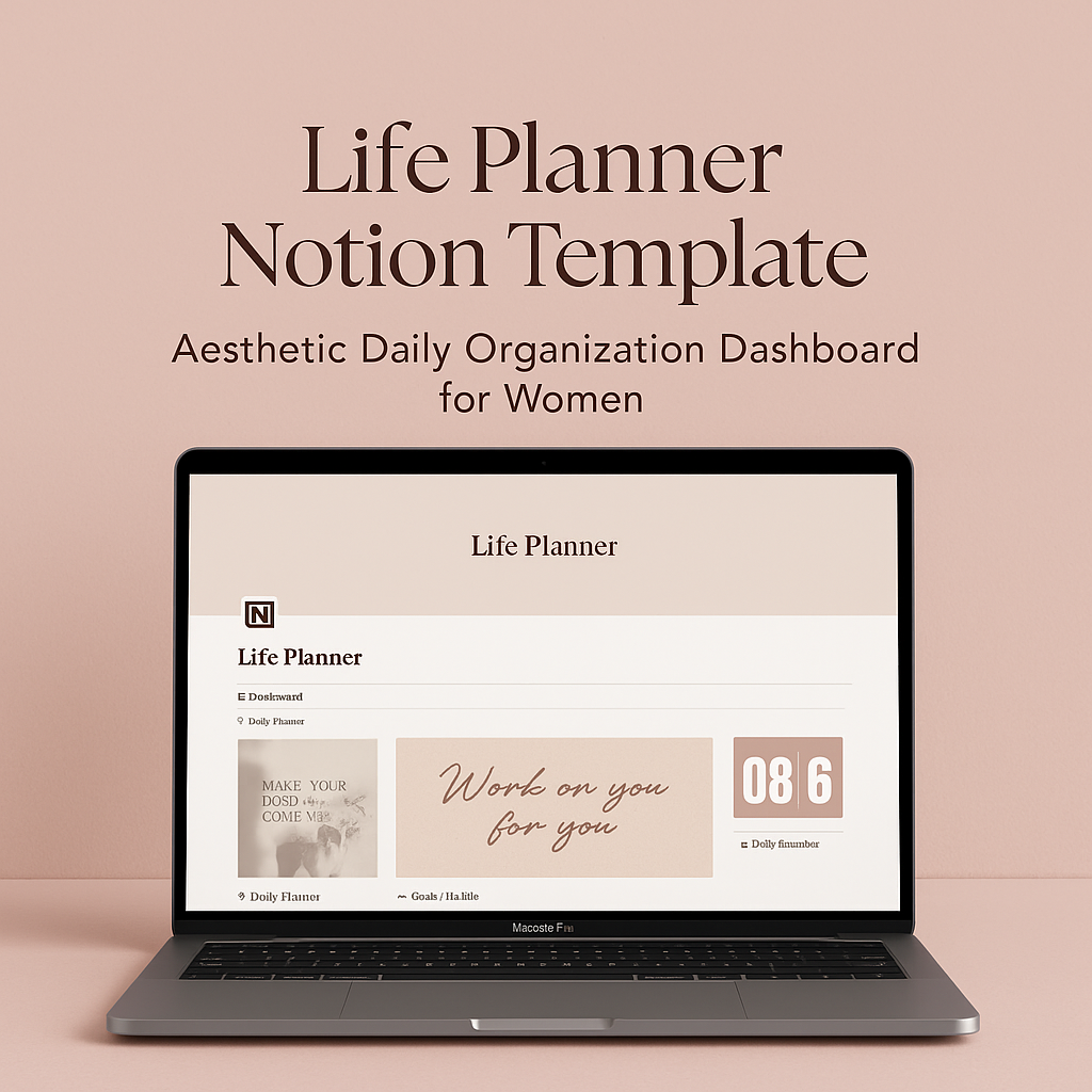 Organize your life with ease using this Aesthetic Life Planner for Notion, designed especially for women who want clarity, balance, and a beautifully structured daily routine.