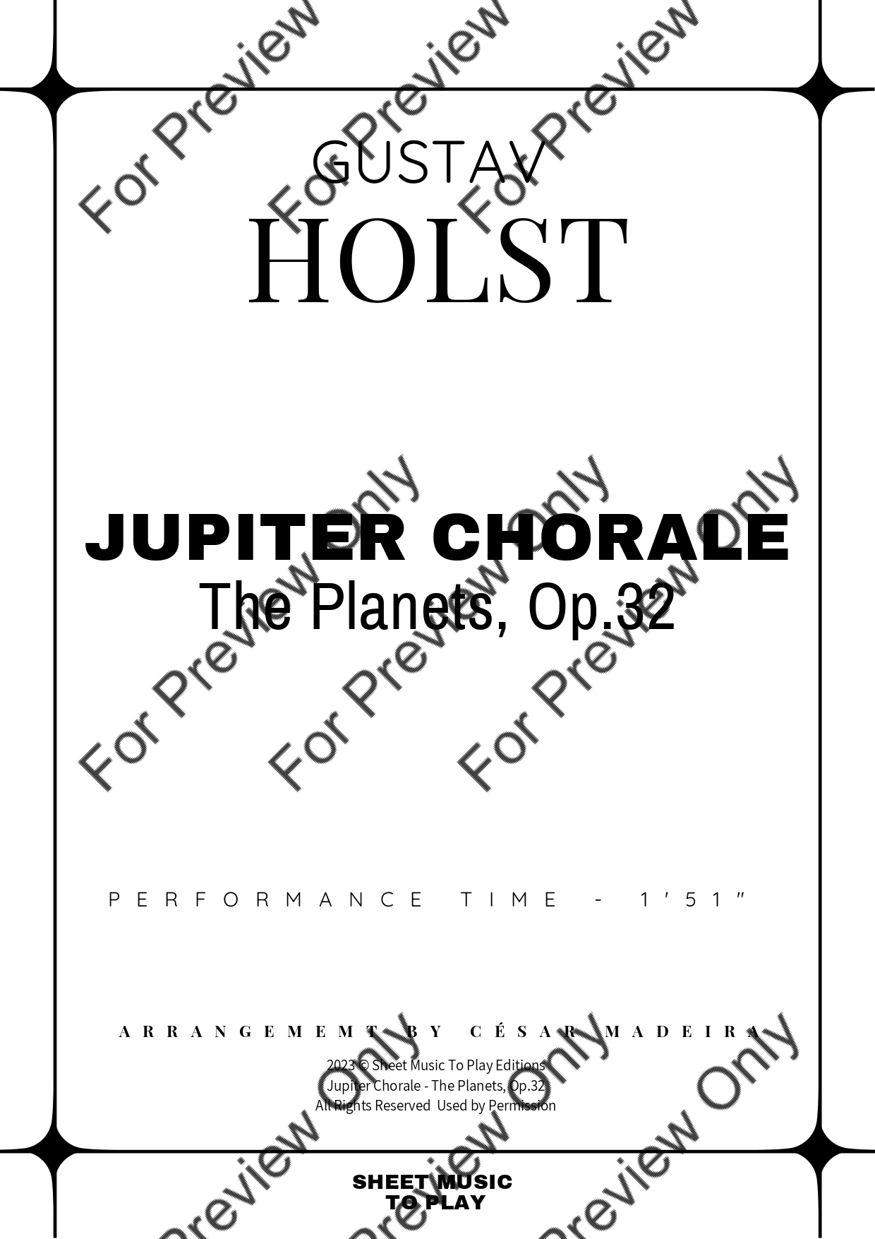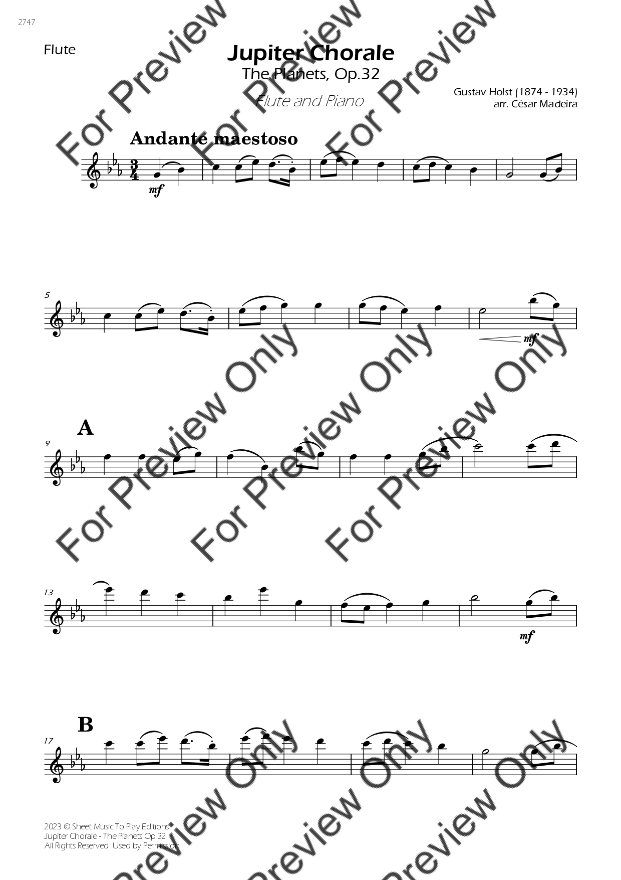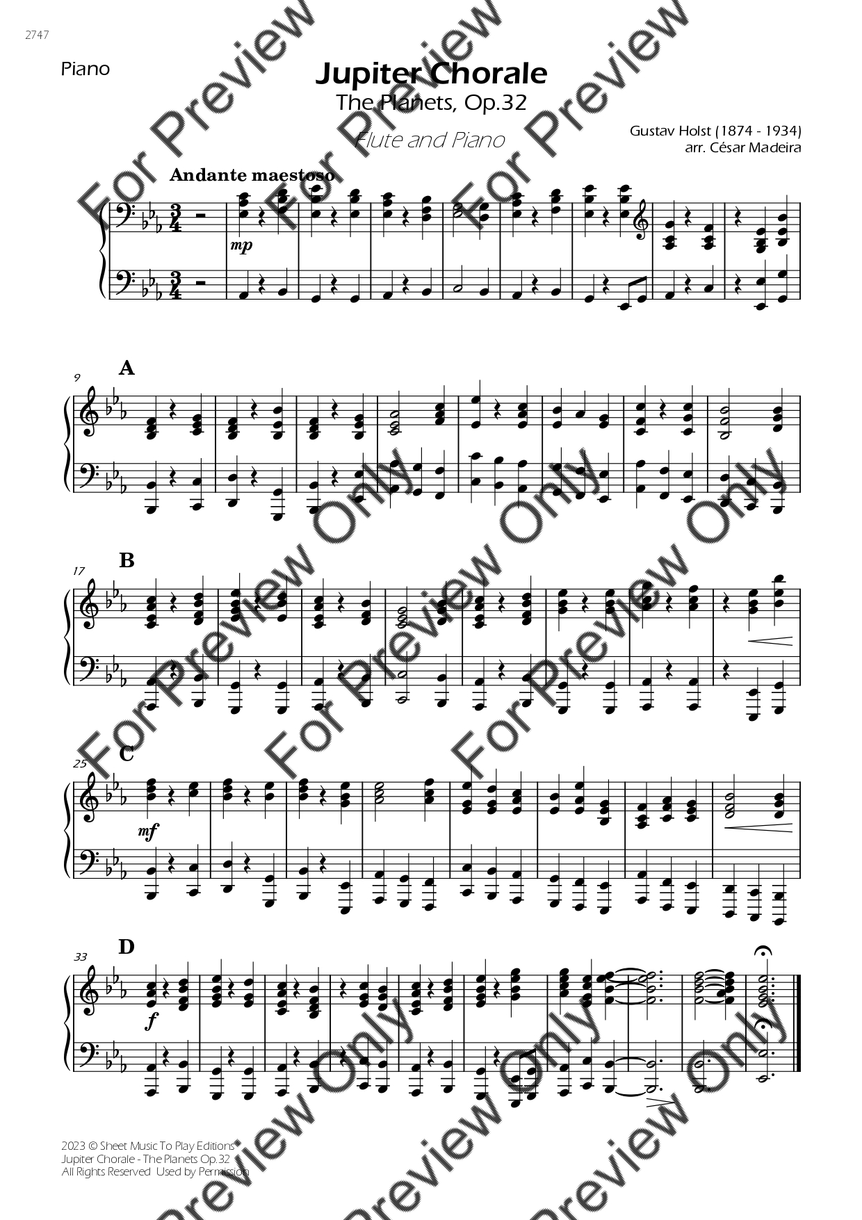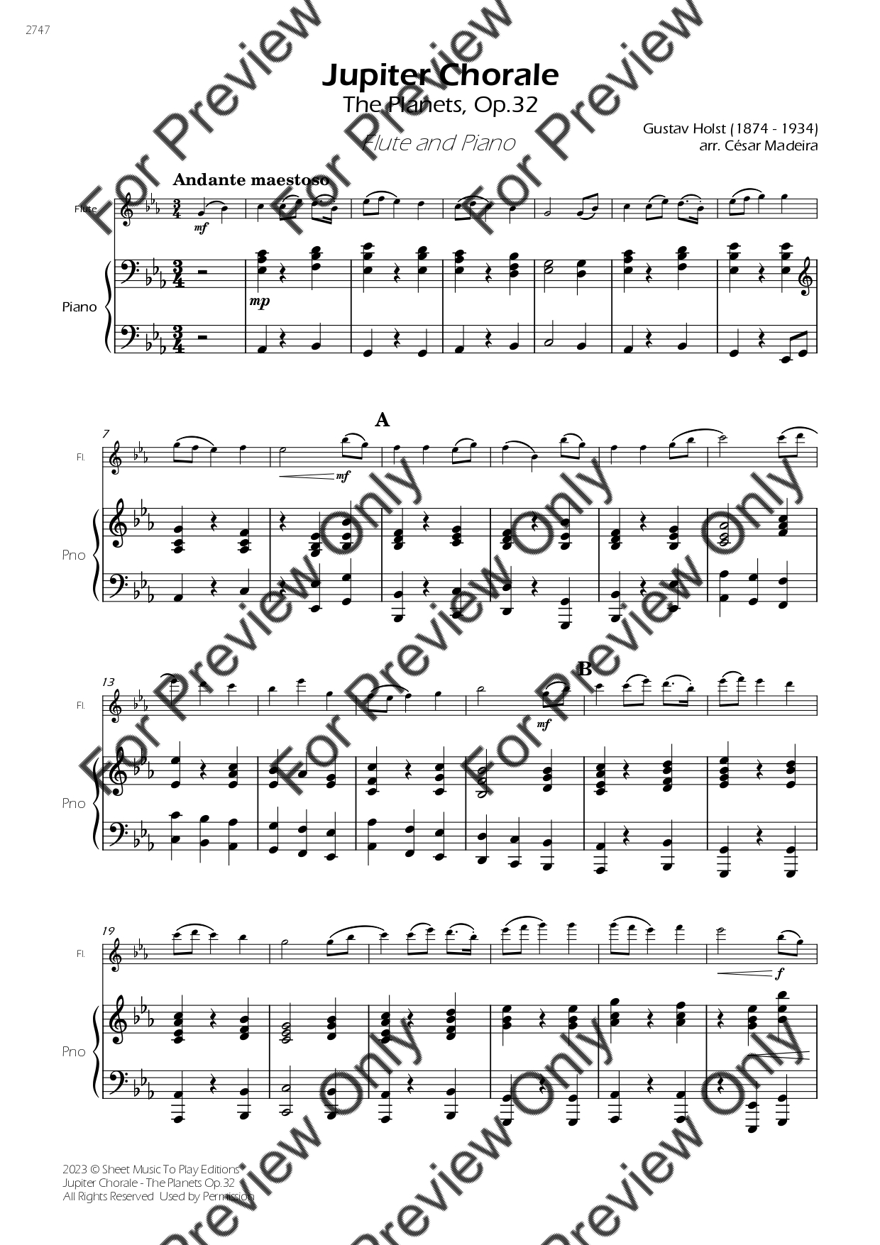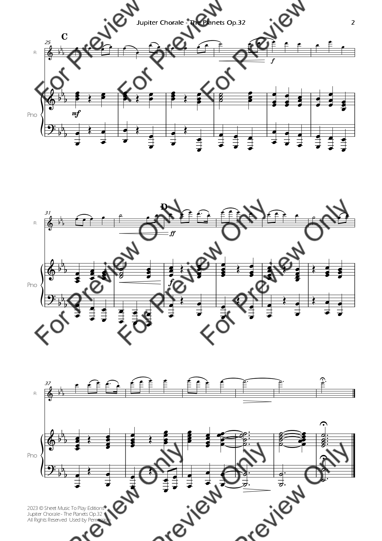 Jupiter Chorale from The Planets by Gustav Holst. Arrangement for Flute and Piano. With Full Score and Individual Parts. Have fun!