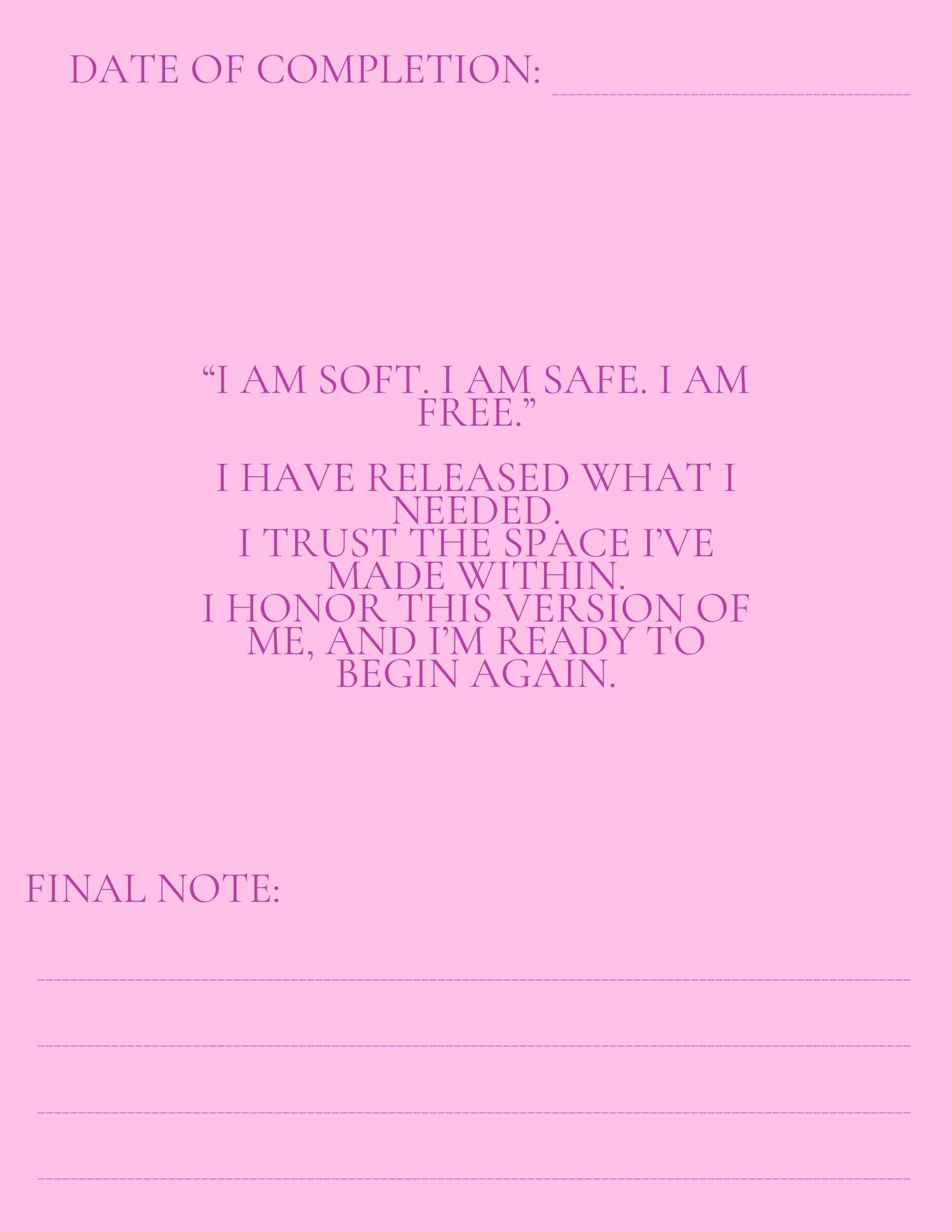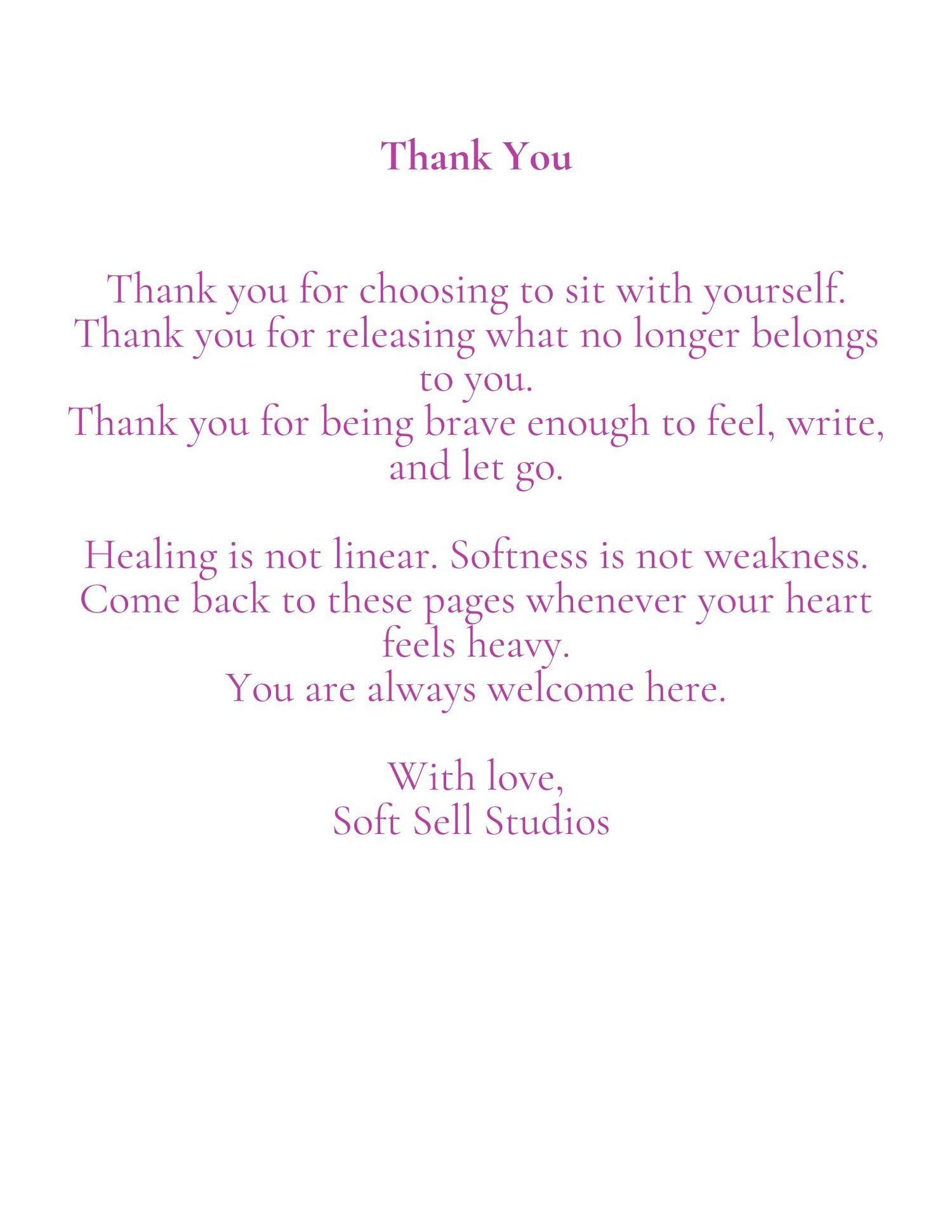 The Soft Release Journal is a 30-page guided healing tool designed to help you process your emotions, clear mental clutter, and finally release what no longer serves you. Whether you’re moving through heartbreak, burnout, or simply need a soft place to land—this journal was made for you.
